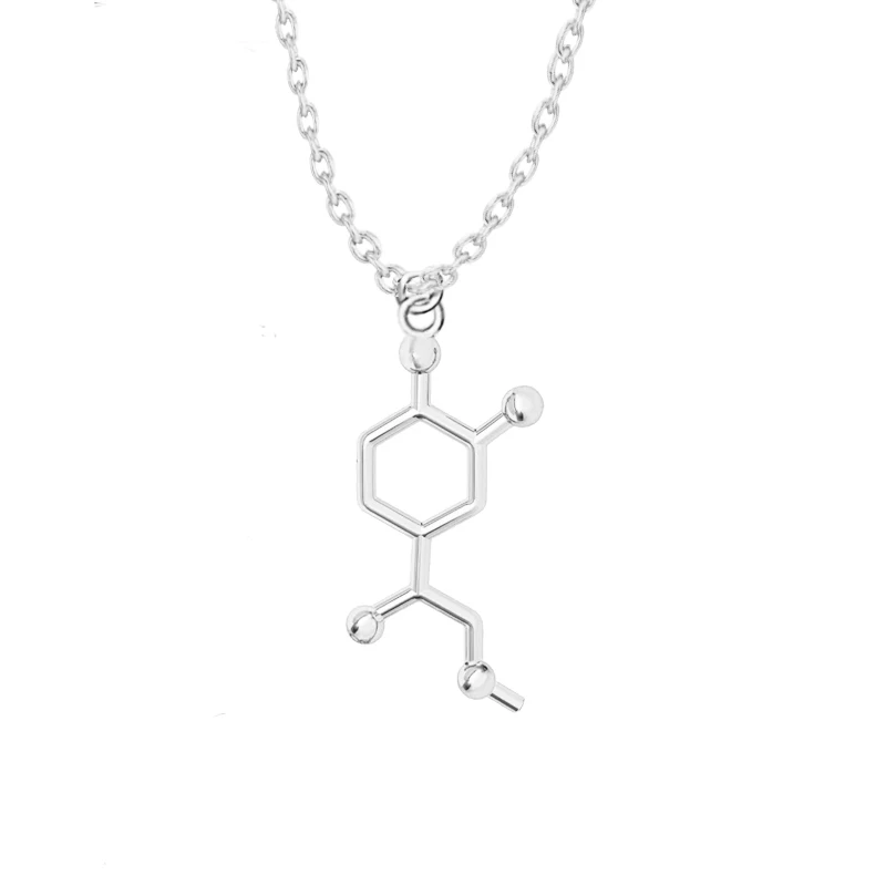 Описание Ожерелье с подвеской в виде кольца с молекулой адреналина Адреналин-один из важнейших гормонов, контролирующих работу нашего организма. Он приходит в игру, когда мы чувствуем стресс или оказываемся в сложной ситуации. Он помогает нам освоить всю силу и активную мозговую деятельность, чтобы преодолеть все трудности! Ваше сердце бьется быстрее, в ваш мозг поступает больше кислорода, и вы готовы справиться с самыми сложными делами ..