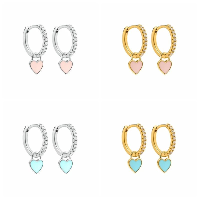 Aide, серьги-кольца из стерлингового серебра 925 пробы с милыми конфетными неоновыми цветами, эмалированные серьги с сердечками, серьги-подвески золотого и серебряного цветов для девочек
