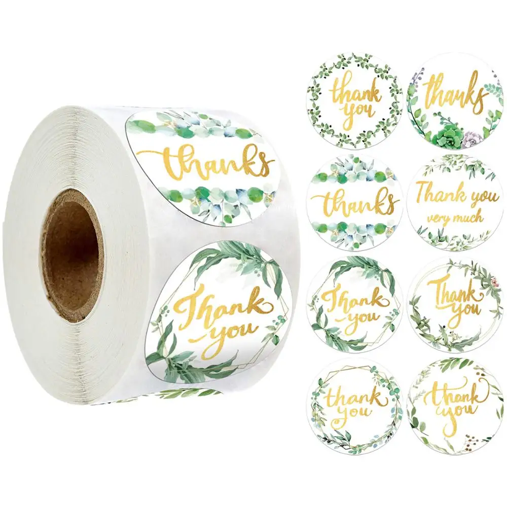 8 видов конструкций наклейка спасибо с зелеными растениями 500 штрулон канцелярских принадлежностей упаковочные этикетки для печати наклейки для свадебных приглашений