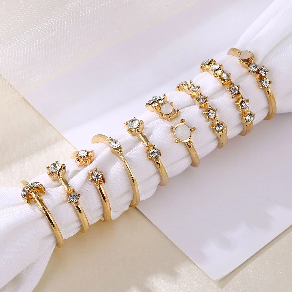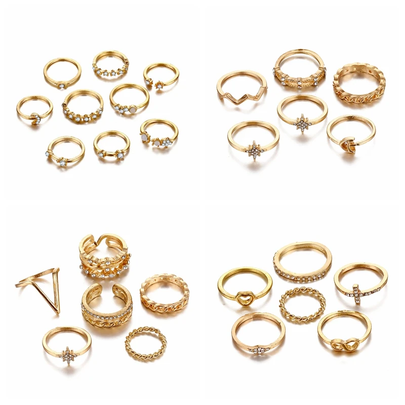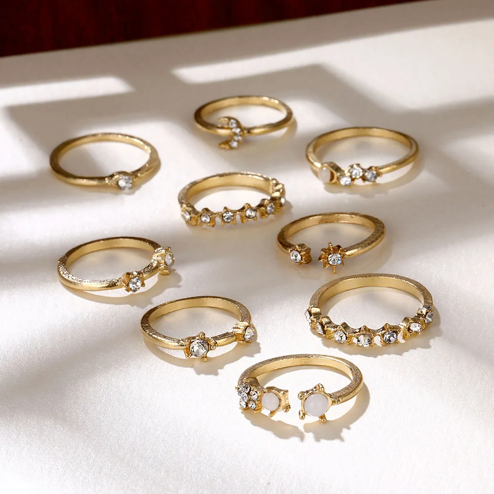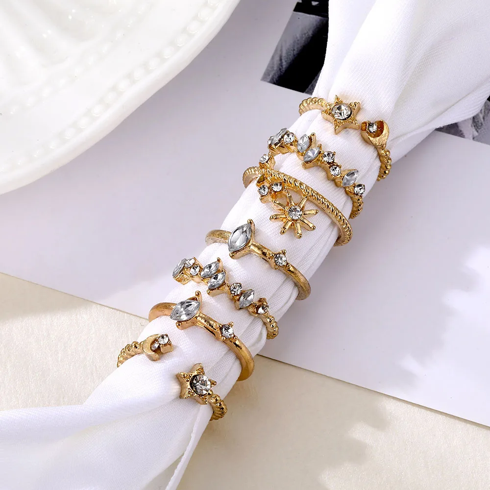 Vienkim с аппликацией в виде Золотой Звезды костяшки кольца для женщин в винтажном стиле; С украшением в виде кристаллов со звездами в форме полумесяца с геометрическим принтом женские кольца на палец комплект ювелирных изделий 2020