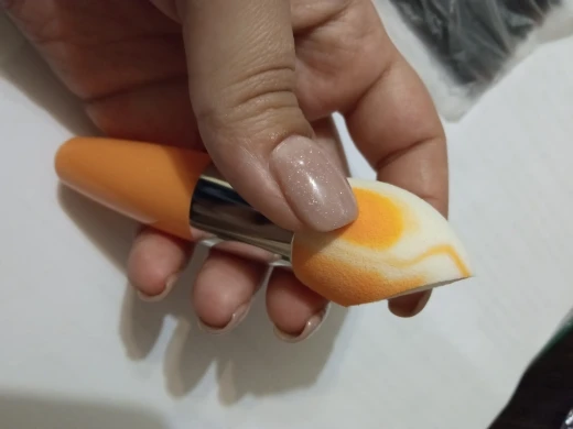 До Москвы шел где-то 3 недели, спонж упакован для пластиковый чехол, удобно для поездок. Сам спонж плотный, держится на ножке плотно. Материал хороший, посторонних запахов нет. На картинке казался больше, чем в реальности