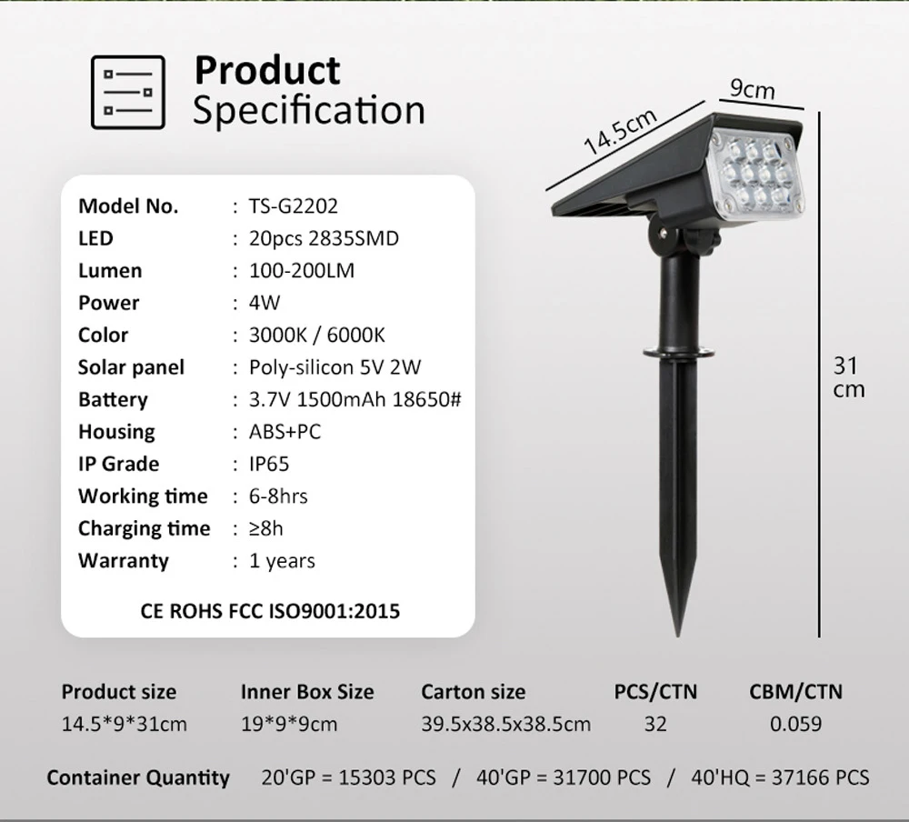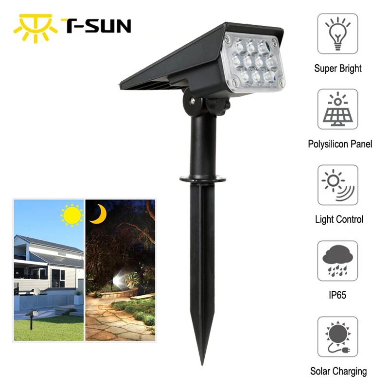 T-SUN, регулируемый садовый светильник на солнечной батарее, IP65, суперъяркий светильник льник для ландшафта, уличная настенная лампа на солнечной батарее, 1 шт.2 шт.4 шт.