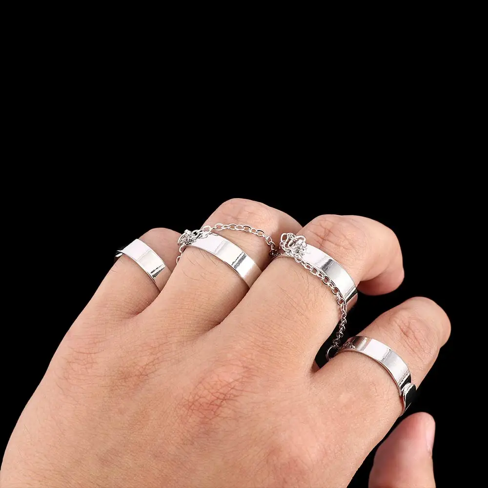 Sindlan 4 шт. Панк Серебряный цвет цепь кольца для женщин простой х...