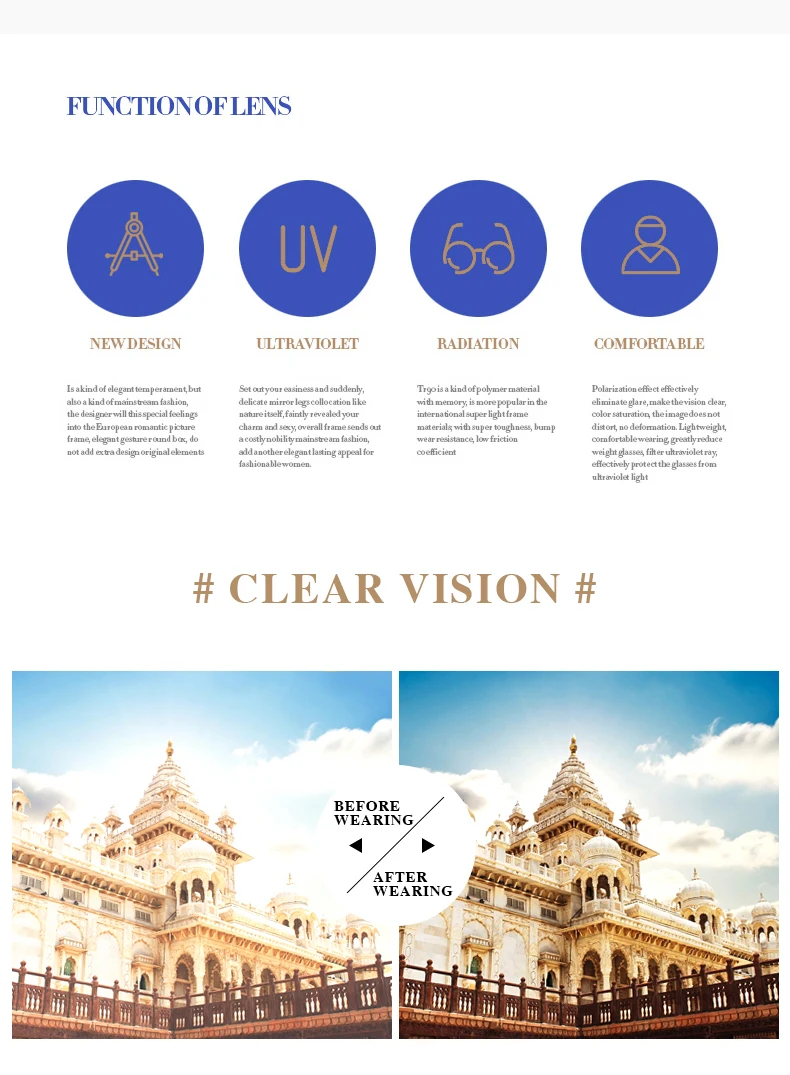 Product Function100% UV400 Protection Against Harmful UVA/UVB