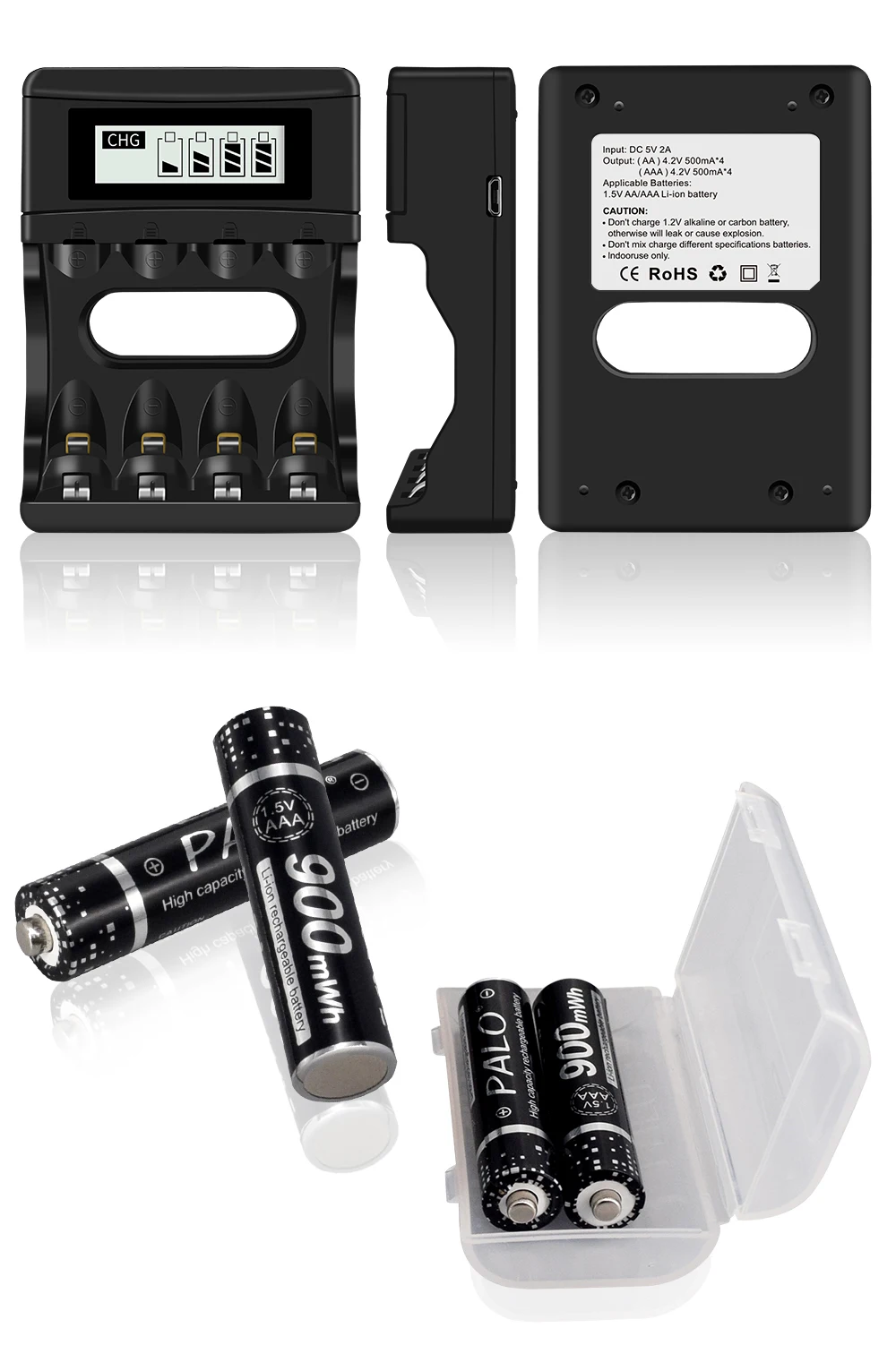PALO 1,5 v AA литий-ионная батарея зарядное устройство для 1,5 v ли...