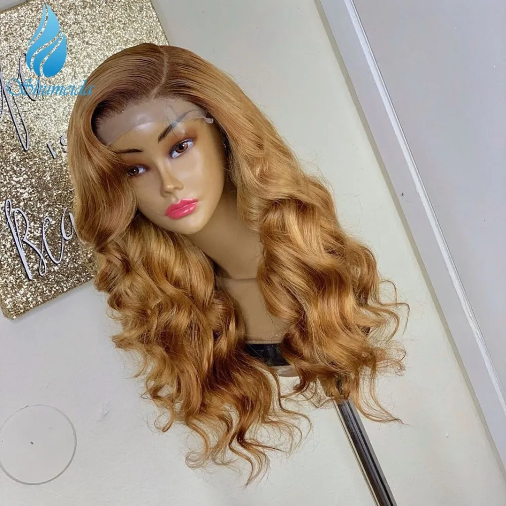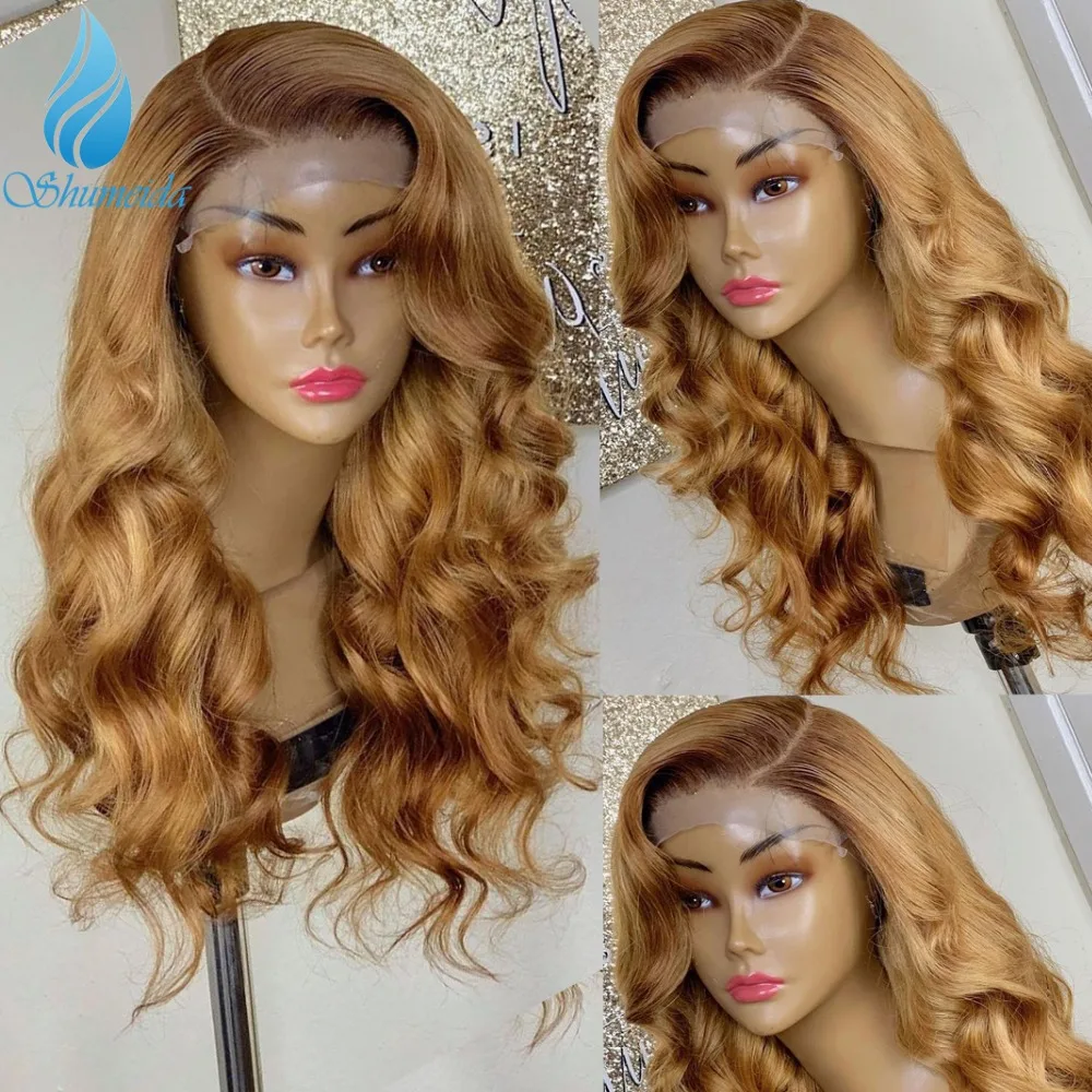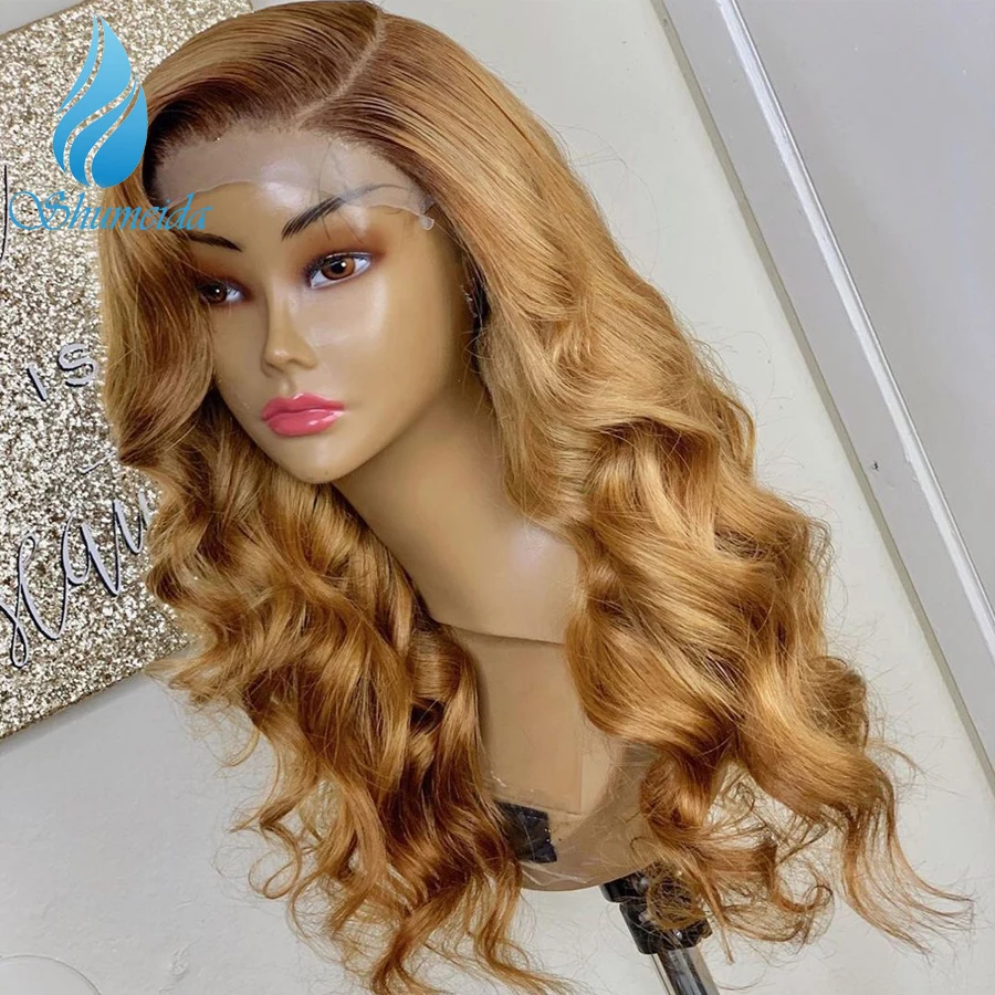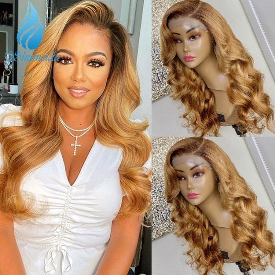 Парики Shumeida с эффектом омбре, медовый блонд, 13*4, перуанские, парики с детскими волосами, коричневые Человеческие волосы Remy, волнистые волосы 4*4