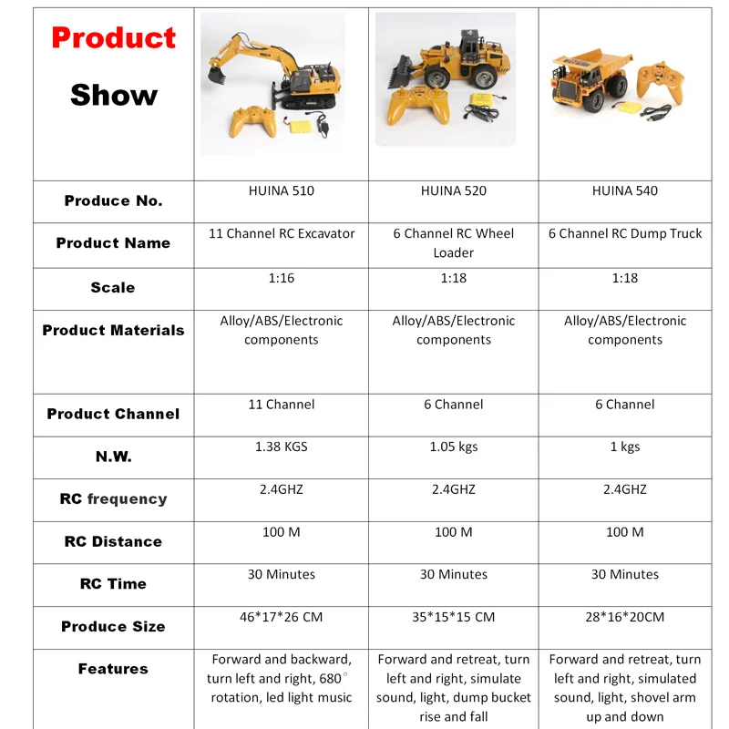 HUINA 510/1510 11 канал радиоуправляемй экскаватора