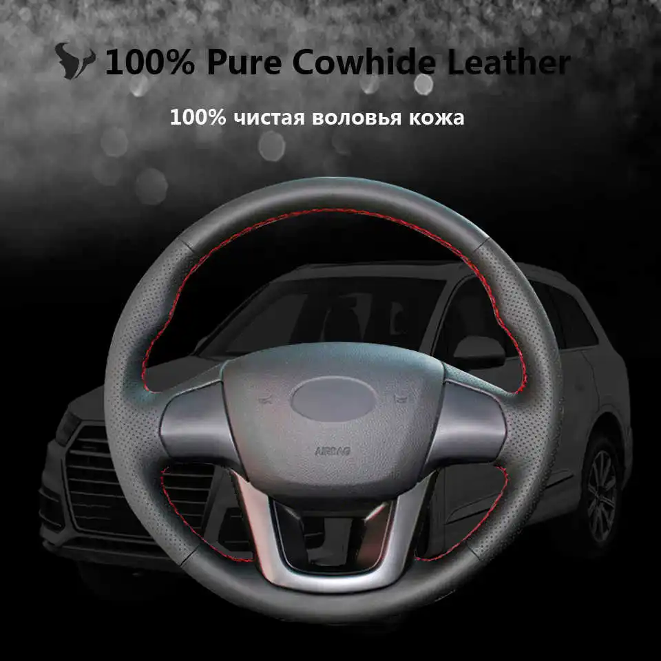 Черный чехол на руль из натуральной кожи для Kia K2 Kia Rio 2011 2012 2013