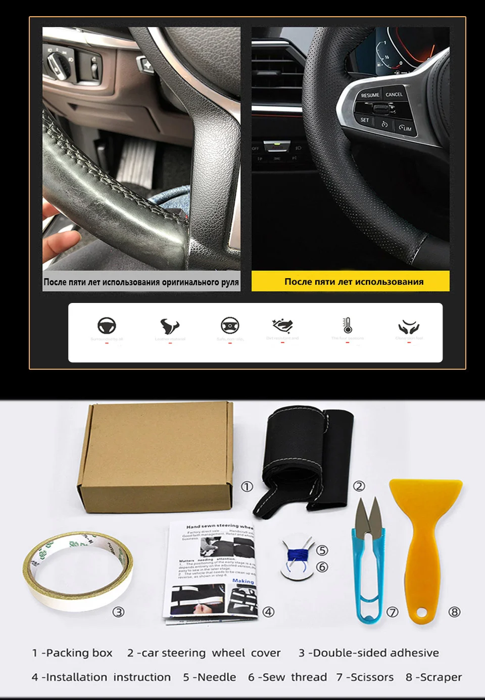 5. Чехол на руль можно использовать для установки кожи оригинального руля. Его можно установить непосредственно после получения, не снимая кожу оригинального руля!