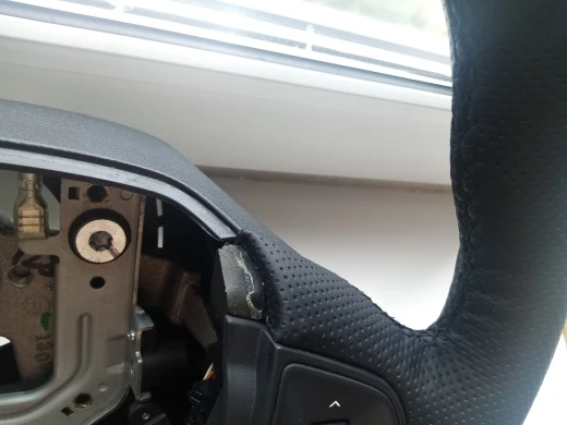 Это стоит довольно много, чтобы разместить кожу, сшить ее, и сделать ее хорошо, с рулем, вы можете взять около двух часов. И с рулем, размещенным в автомобиле, возможно до 4 часов. Но если вы цените такой вид изменений, это того стоит. Я второй такой. В моем предыдущем автомобиле я также ставлю один.
