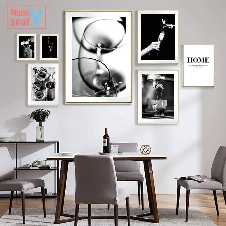 Черно-белое искусство натюрморт жизнь картина бокал вина кофе постер с фасолью винтажное украшение для дома модульная печатная картина на фото