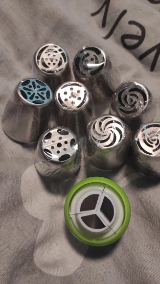 Получил ок. Твердый металл и хорошо определенные дизайны. Каждый мундштук обернут индивидуально, чтобы они не трескались. Насадка широкая, поэтому она не совместима с моей тканевой ручкой. Я добавил пару фотографий, сравнивая их с другими насадками, которые у меня уже есть. Они все идеально подходят к тройному адаптеру.