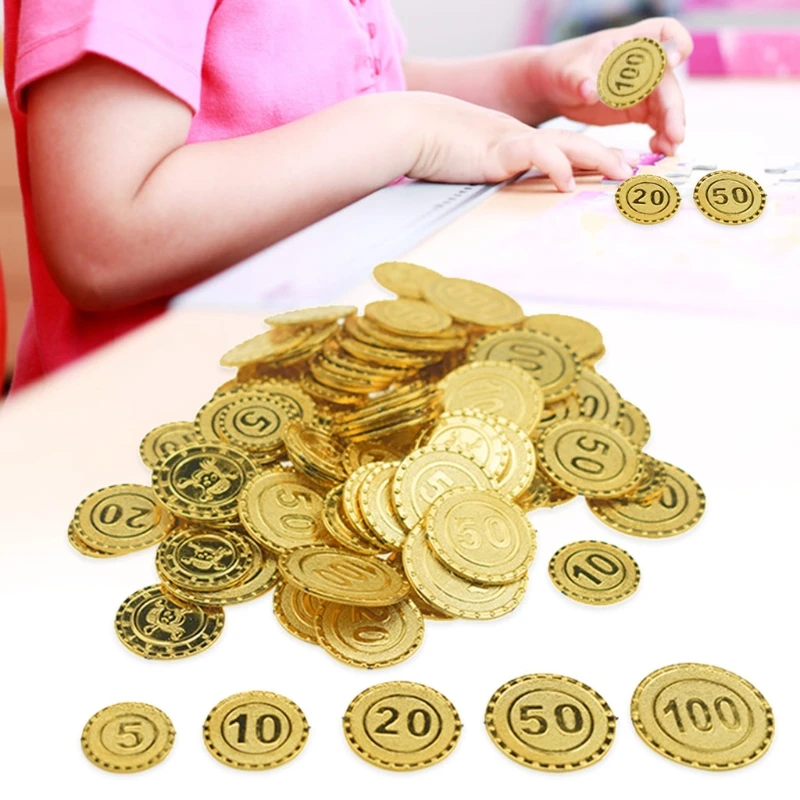 100 шт. пиратские золотые монеты, торг с чипом, пластиковая монета для игр для детей, товары для вечеринок, сокровища в виде монет рождественские украшения, игрушка 62KF
