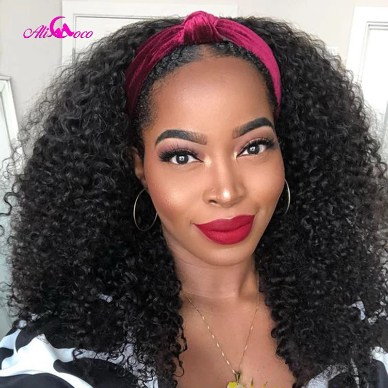 Афро кудрявый завиток парики из натуральных волос с Африканской структурой, Для женщин шоколадного цвета Цветной вьющиеся парик с головной повязкой 200 плотность вьющиеся человеческие волосы парик Али Коко