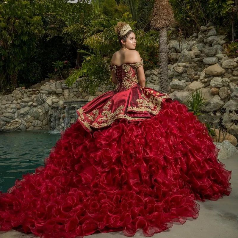 Женское платье с золотой аппликацией и открытыми плечами, милое бальное платье 16 размеров 15 лет, 2021
