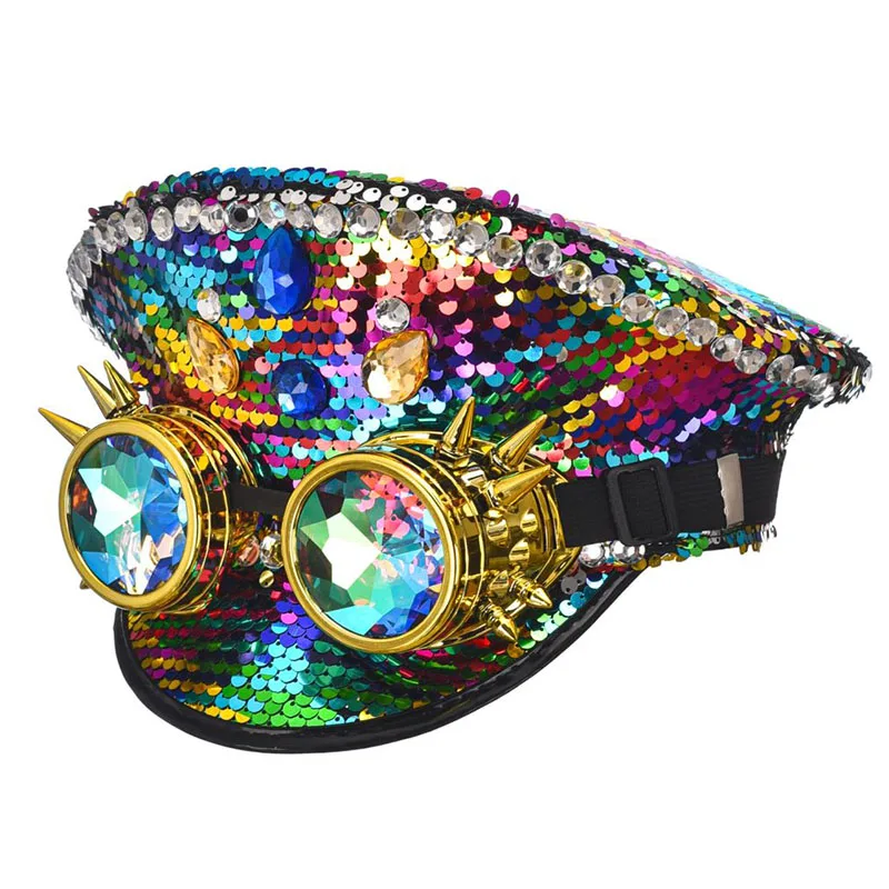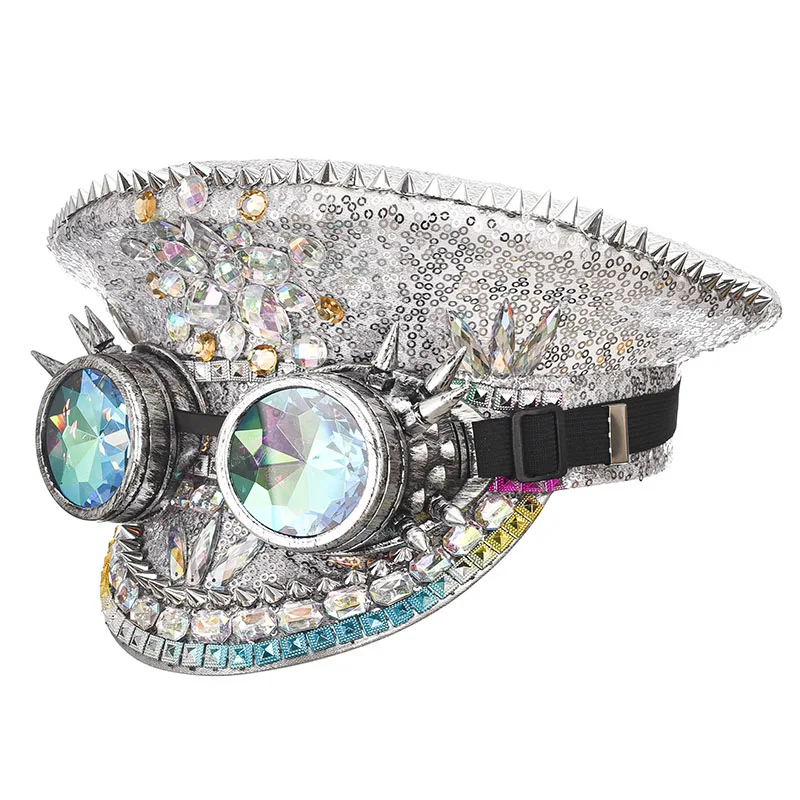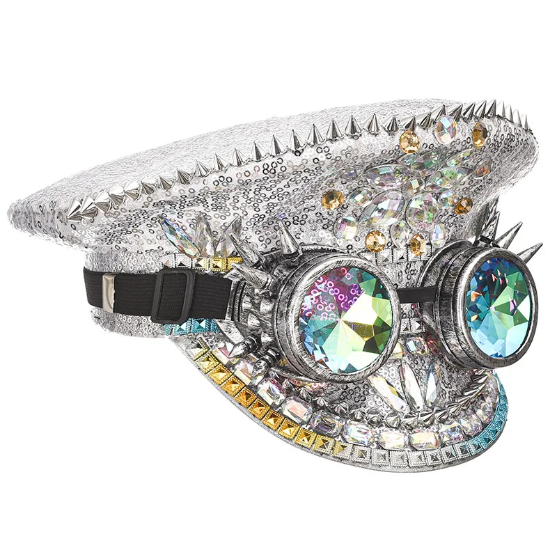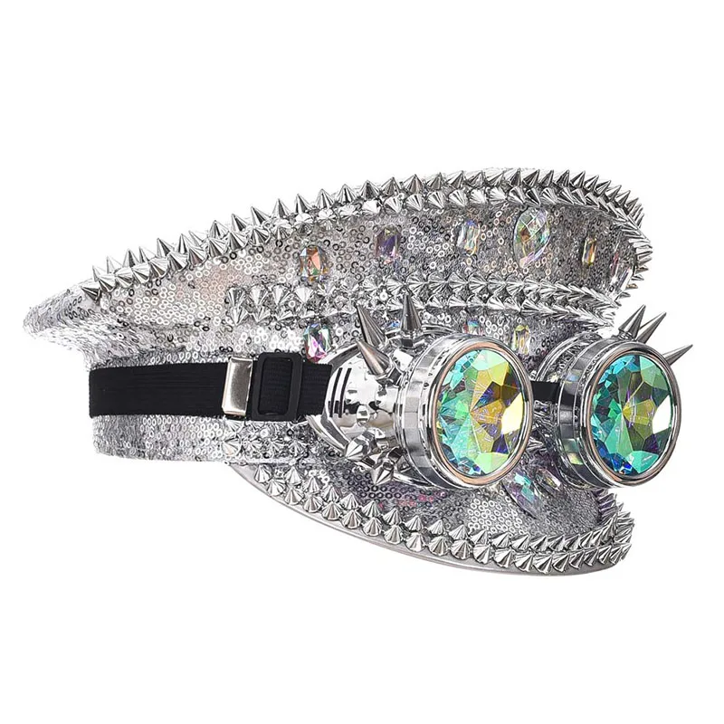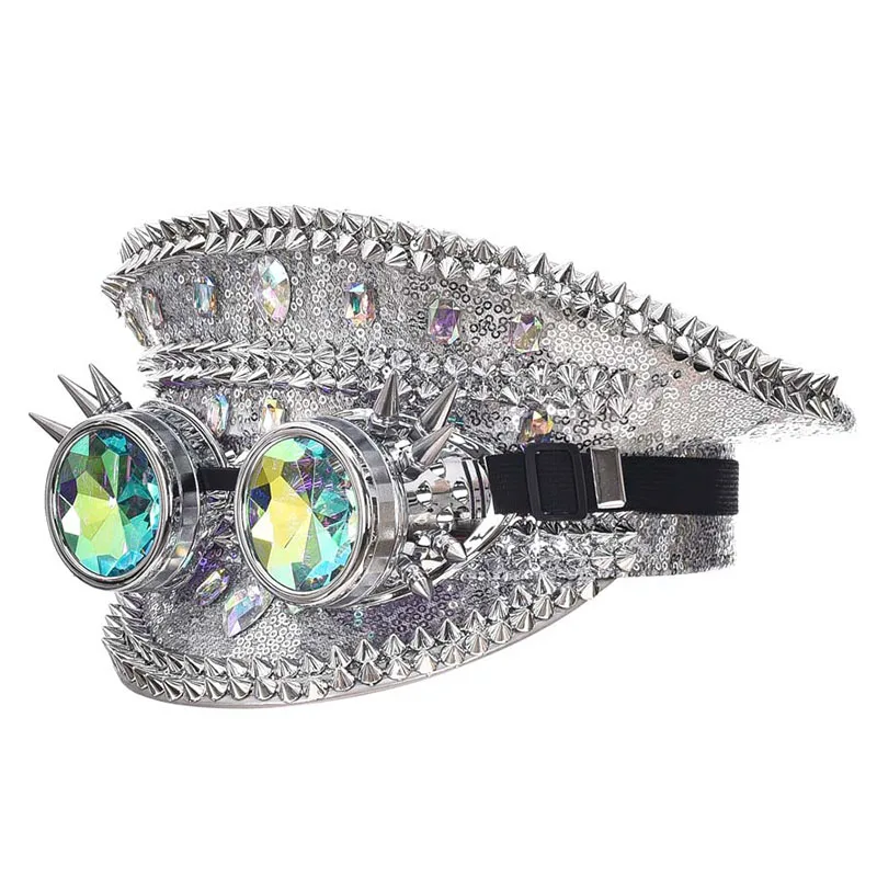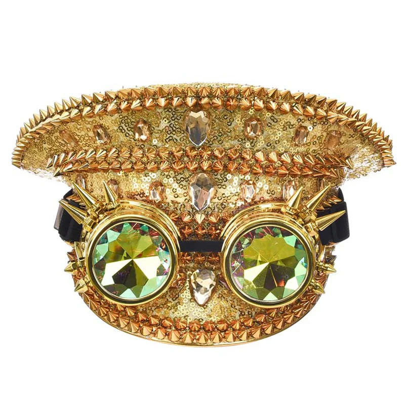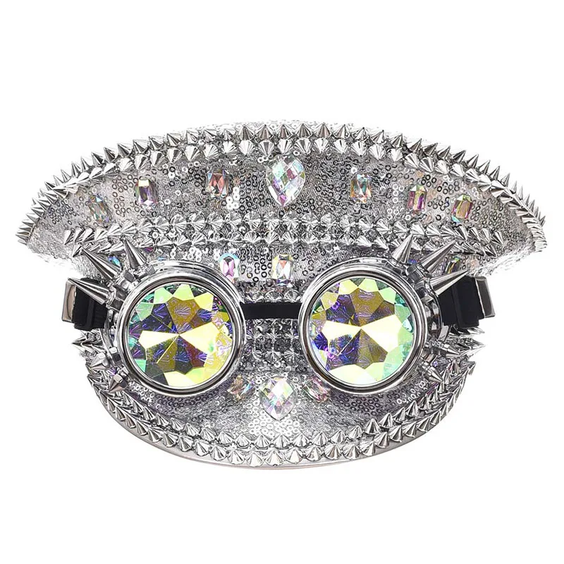 Серебряные блестки и заклепки, бриллиантовая Готическая шапка в стиле стимпанк, реквизит для косплея для взрослых из аниме, аксессуары для костюма на Хэллоуин, одежда для ночного клуба и вечеринки