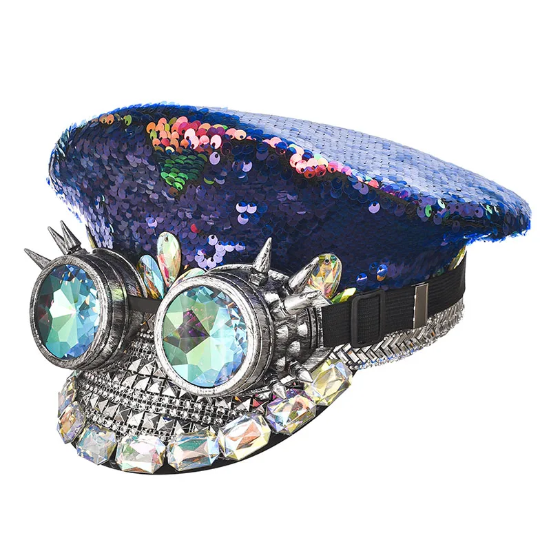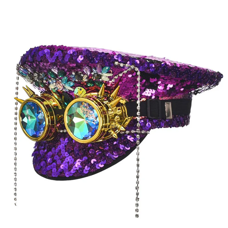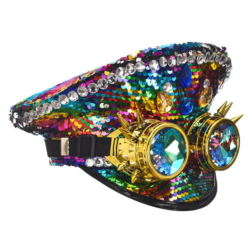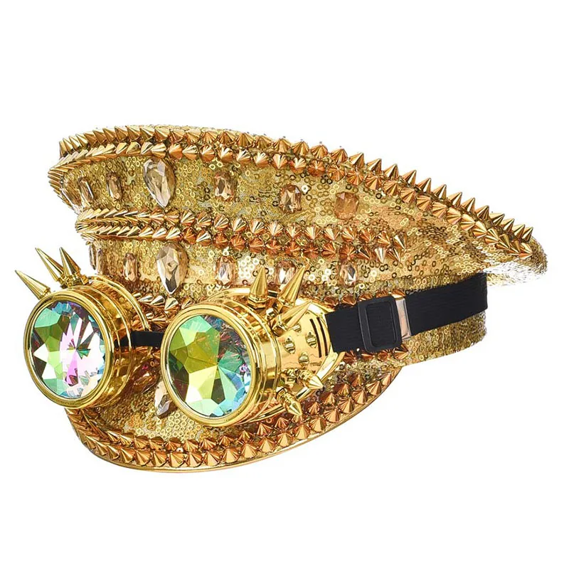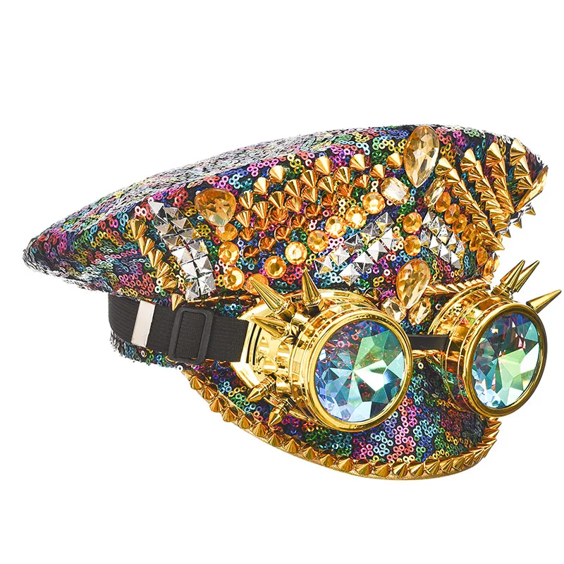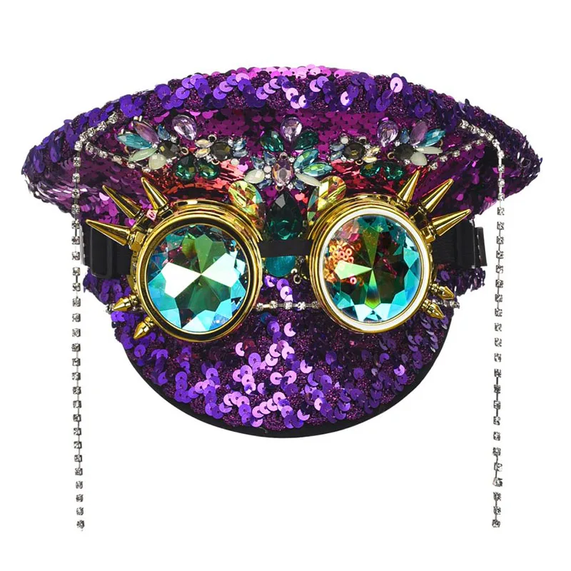 Серебряные блестки и заклепки, бриллиантовая Готическая шапка в стиле стимпанк, реквизит для косплея для взрослых из аниме, аксессуары для костюма на Хэллоуин, одежда для ночного клуба и вечеринки