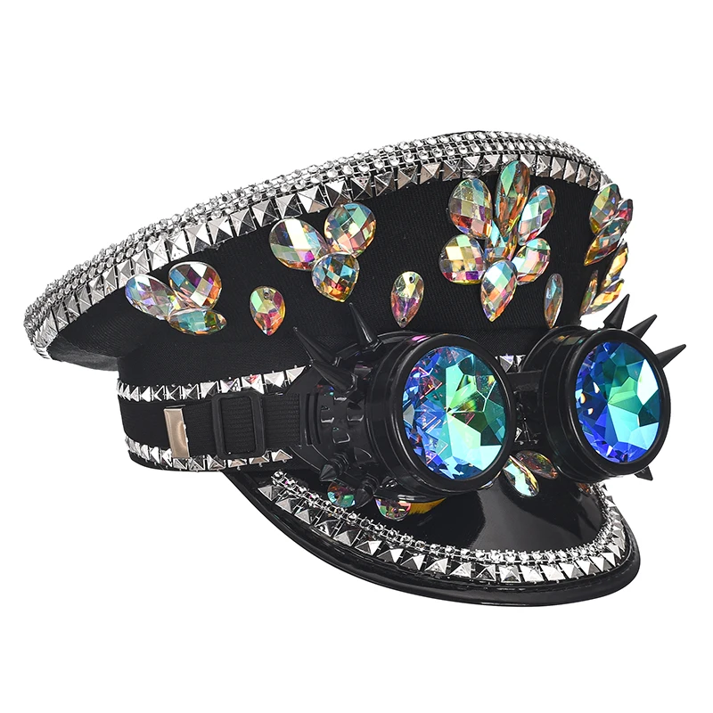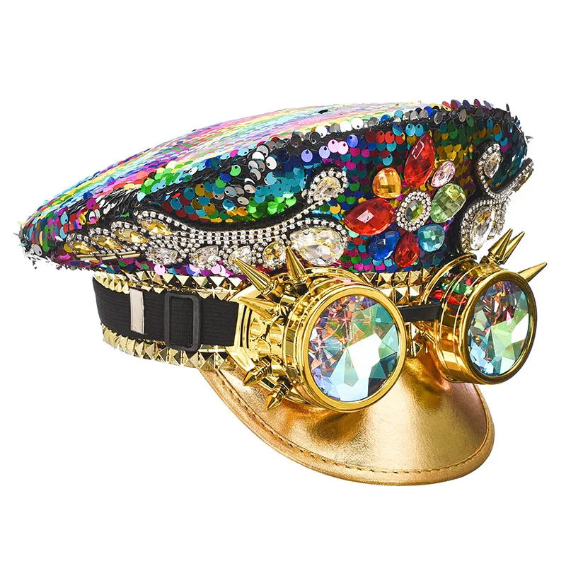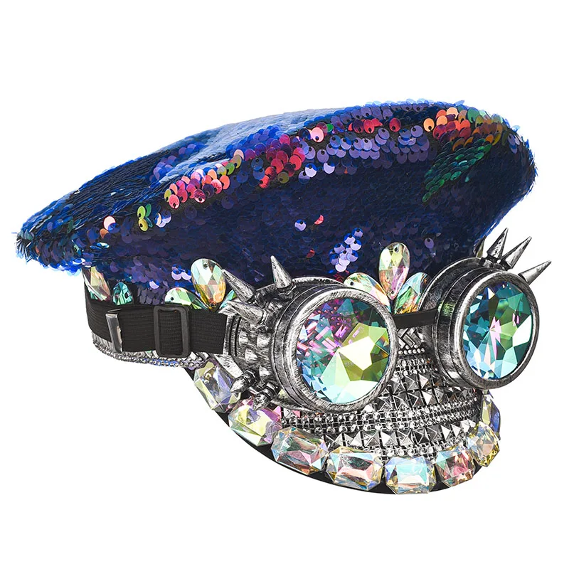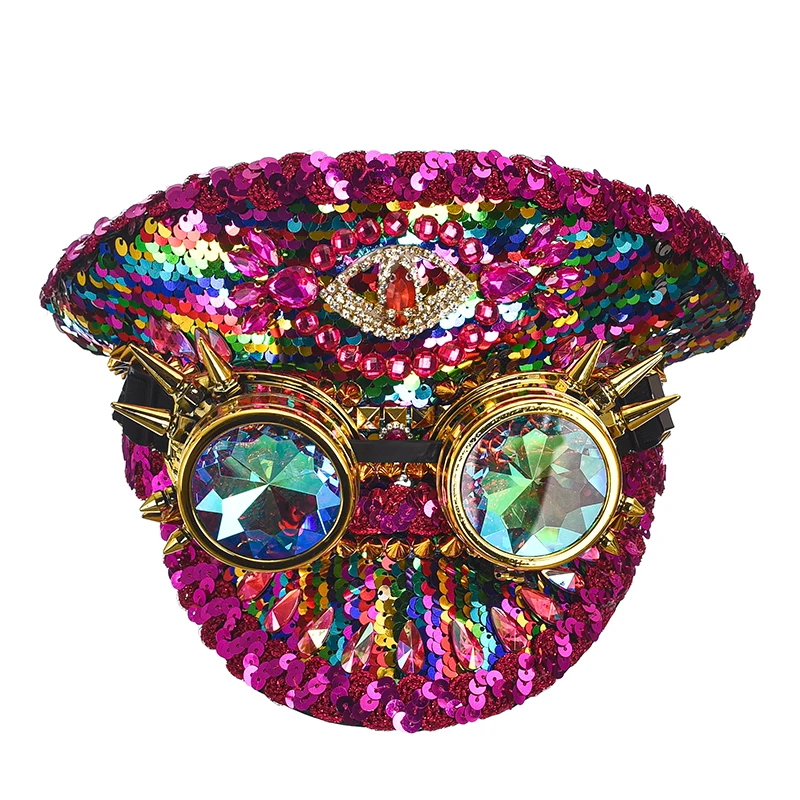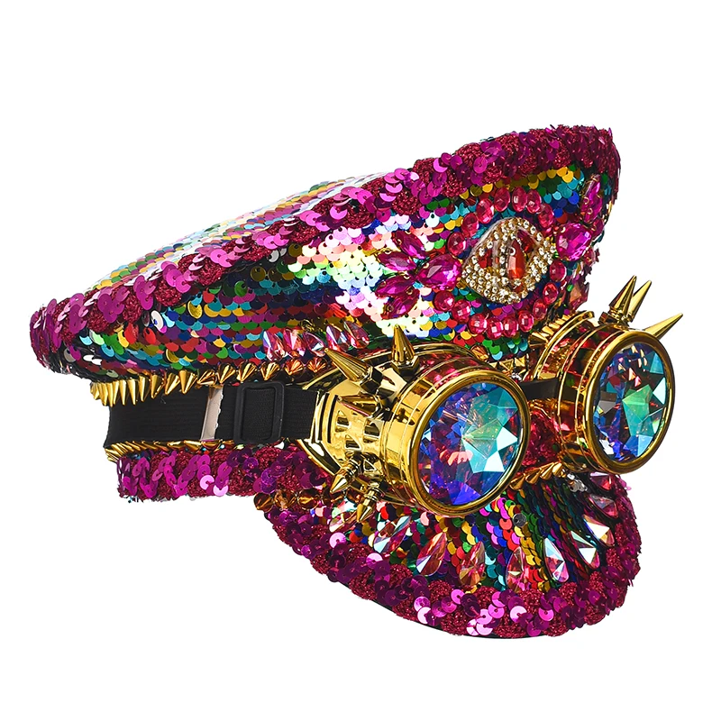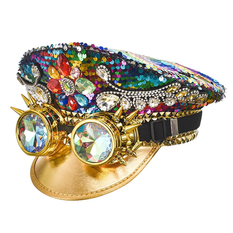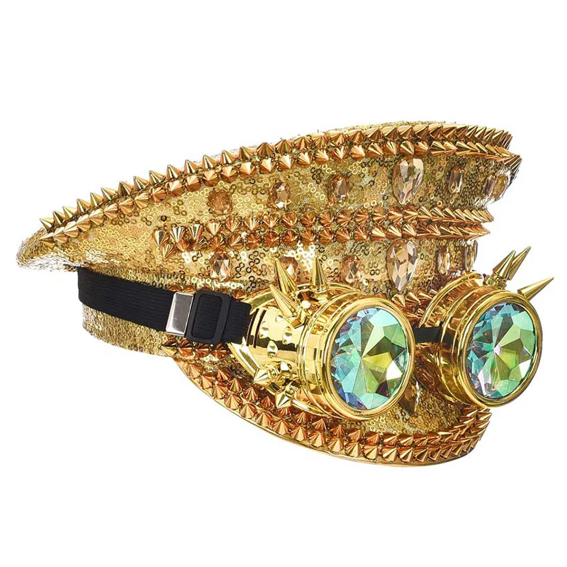 Серебряные блестки и заклепки, бриллиантовая Готическая шапка в стиле стимпанк, реквизит для косплея для взрослых из аниме, аксессуары для костюма на Хэллоуин, одежда для ночного клуба и вечеринки
