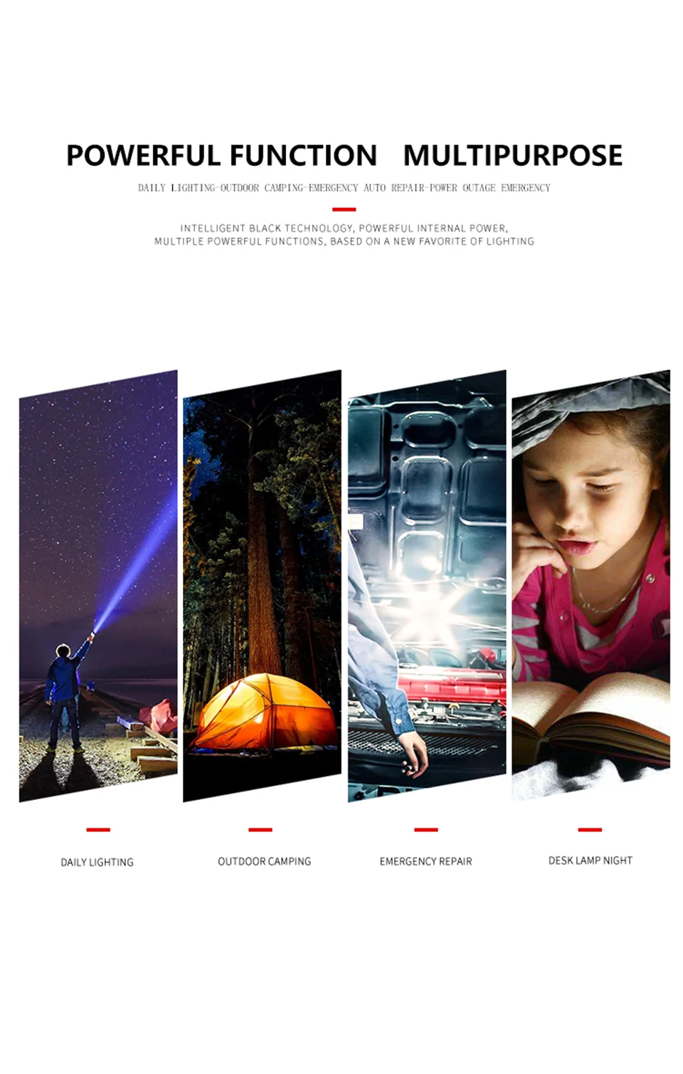 -Он обеспечивает дальность освещения до 300-500 метров и два разных режима освещения, идеально подходит для освещения всей комнаты или лагеря.
