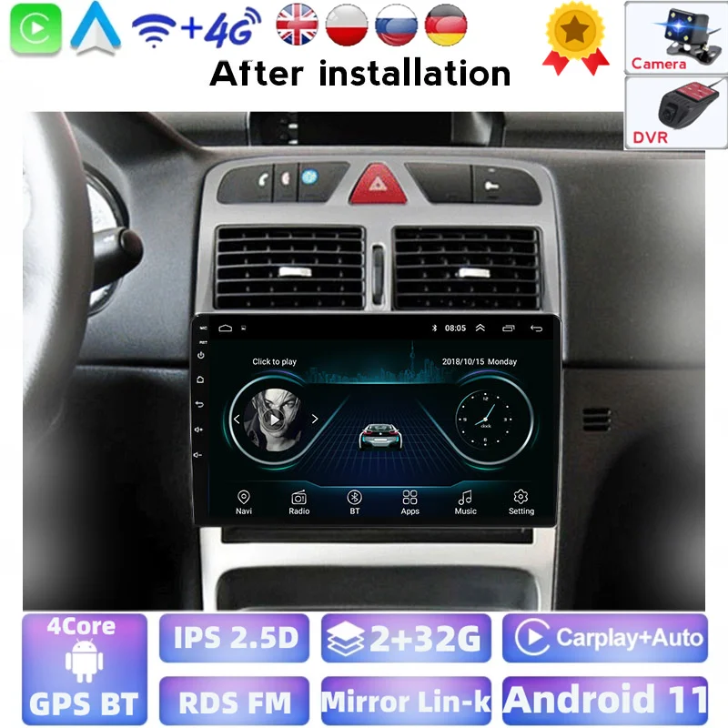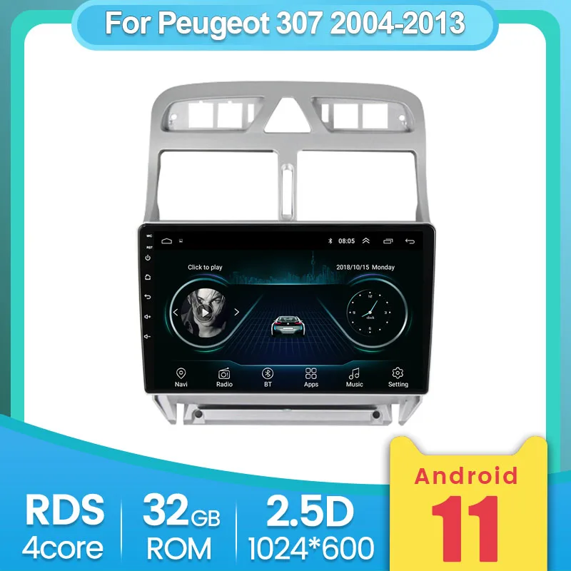 Автомагнитола 2 Din на Android, 2 + 32 ГБ, для PEUGEOT 307, Sw, 307, 2002-2013, мультимедийный видеоплеер, навигация, GPS, Dvd, Wi-Fi