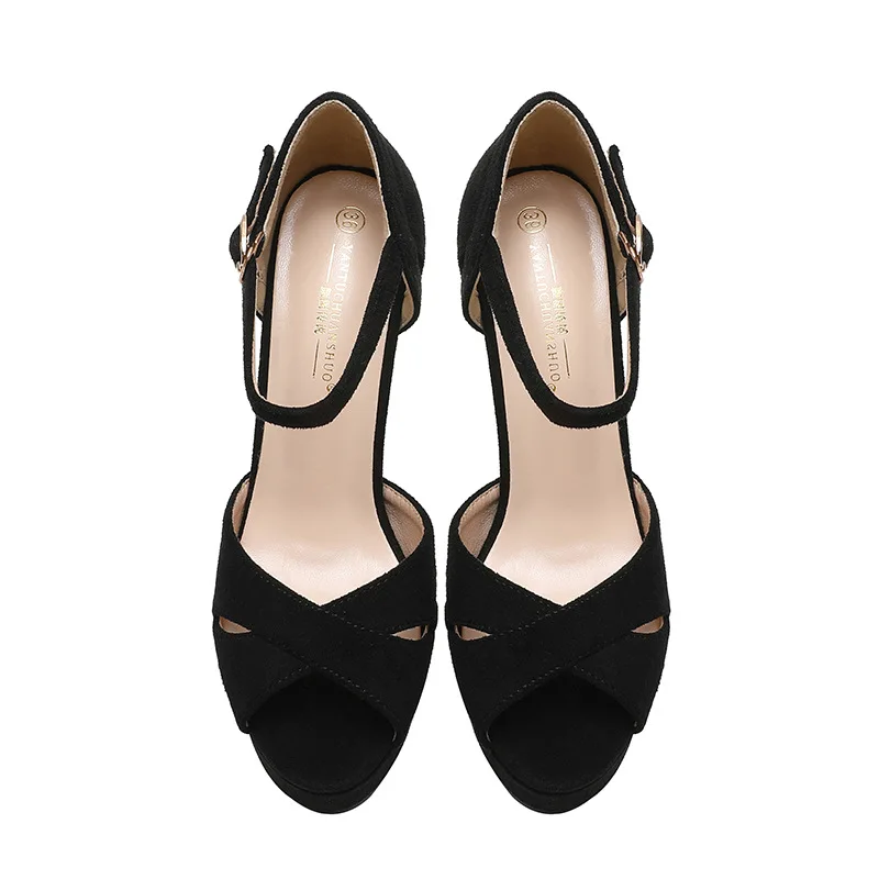 Женские босоножки из флока, с открытым носком, на Высоком толстом каблуке, с пряжкой, лето 2020