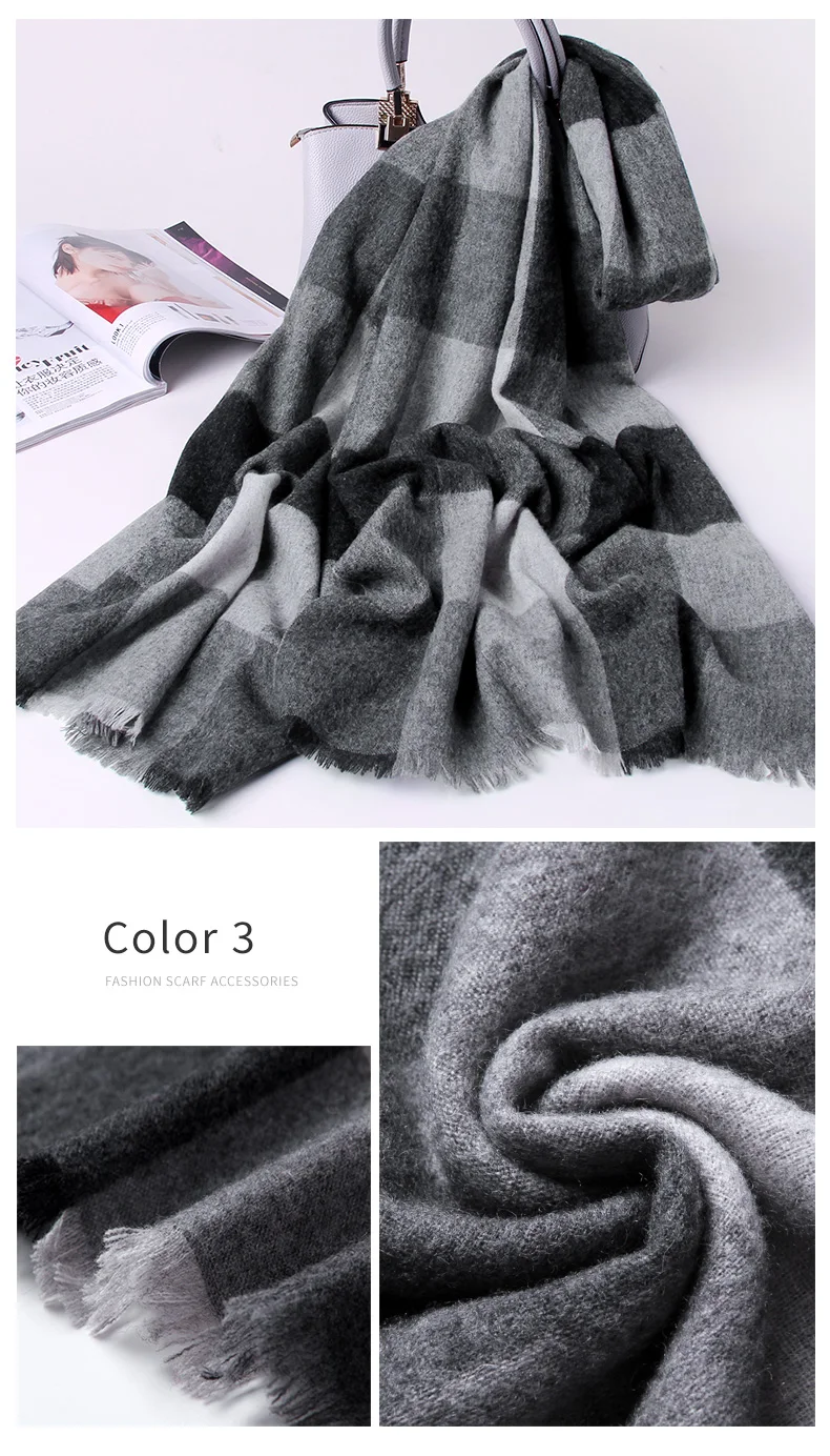 Шерстяной шарф, зимние женские и мужские шали и обертывания, пашмины, теплые шарфы, мужской полосатый кашемировый шерстяной шарф в клетку, Echarpe Femme