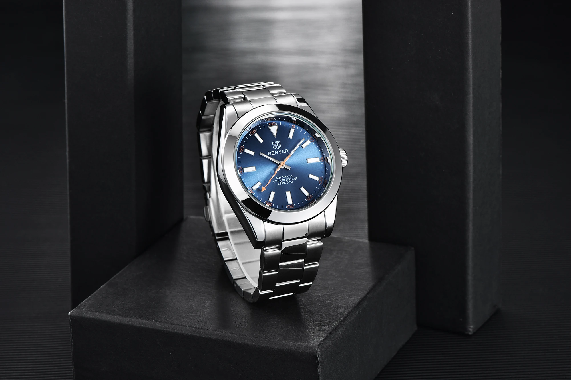 Мужские механические часы из нержавеющей стали BENYAR, повседневные...