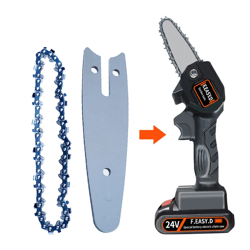 Изготовлен из высококачественного материала, практичный, простой в эксплуатации и использовании, широкий спектр применения, имеет длительный срок службы. Особенности: Перезаряжаемая Электрическая цепная пила светильник и портативная, долгий срок службы батареи, без повреждения коры. Светильник корпус светильник и удобный светильник дизайн, долгое время держит и не устает руки. Двигатель из чистой меди, высокая мощность, быстрая резка, повышение эффективности. Практичный, быстрая скорость, низкое энергопотребление. Высококачественный переключатель, быстрая и медленная регулировка, плавное изменение скорости. Интеллектуальный плата управления цепью, защита от перегрузки, для удовлетворения различных потребностей в конструкции. Специальная направляющая пластина, шарик из вольфрамовой стали смазывать не нужно, так что машина снижает сопротивление во время работы и снижает износ машины. Небольшого размера, можно удерживать одной рукой. Высококачественная направляющая пластина, глубокая закалка, более износостойкая, гладкая резка. Характеристики: 1 Электрическая цепная пила или 1 *Направляющая Пластина Портативная электрическая обрезная пила для литиевой батареи 24 В