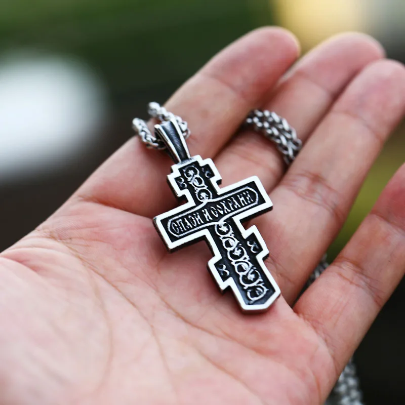 Цепочка с подвеской в виде креста, из нержавеющей стали