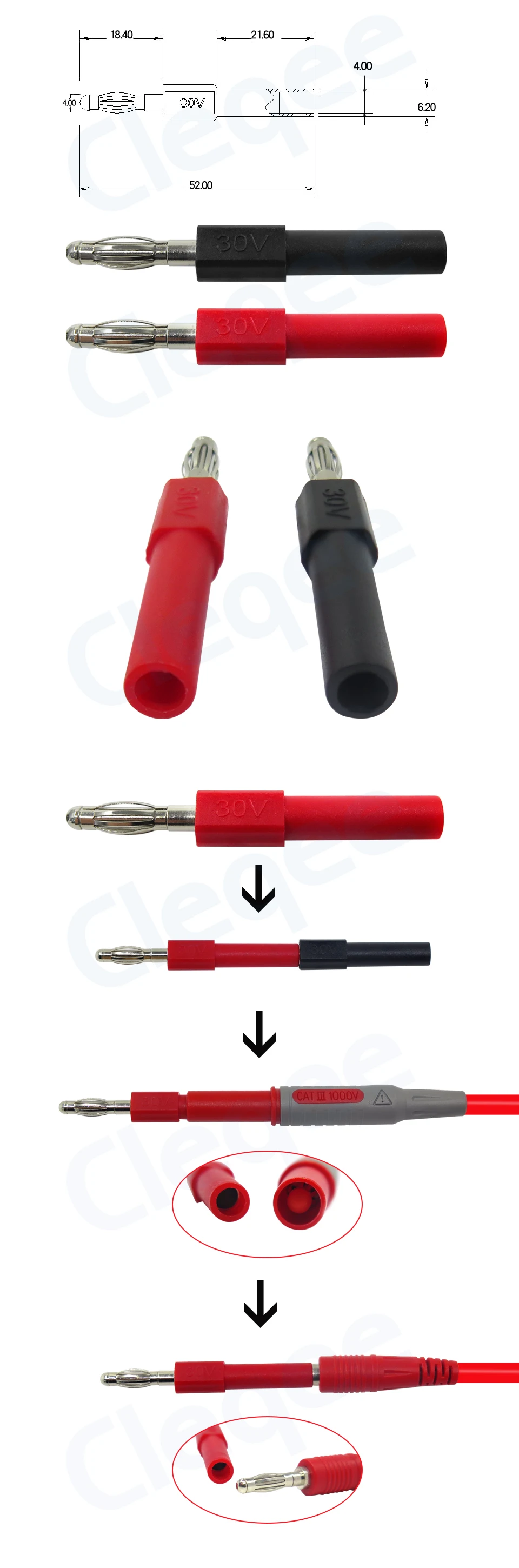 Штекер банановый JXSINONE P7022 2 шт., разъем типа папа-мама 4 мм для тестовых щупов динамиков, конвертер, соединители