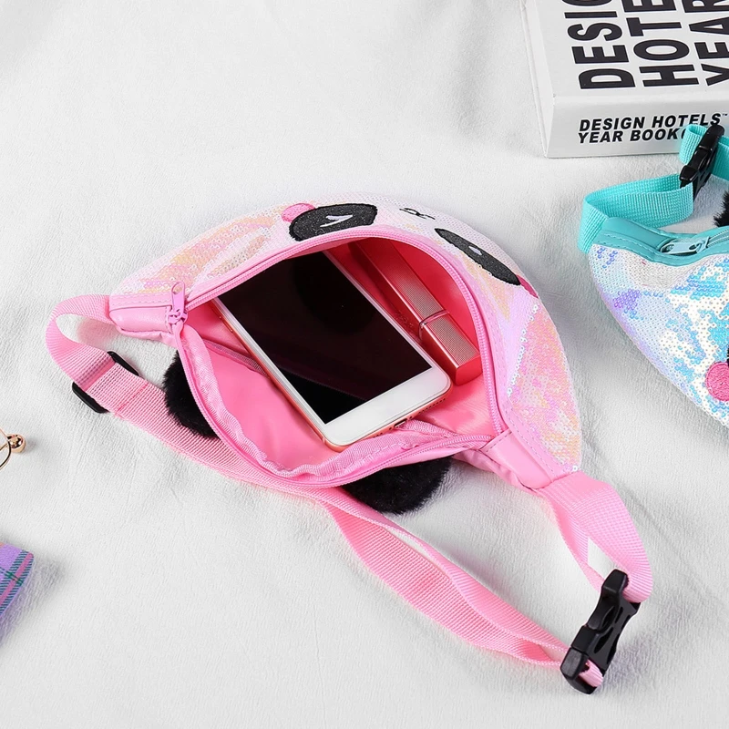 Милая Детская поясная сумка с рисунком панды для девочек, с блестками, поясная сумка, Рождественская детская дорожная сумка на плечо, нагрудный кошелек, Повседневная поясная сумка
