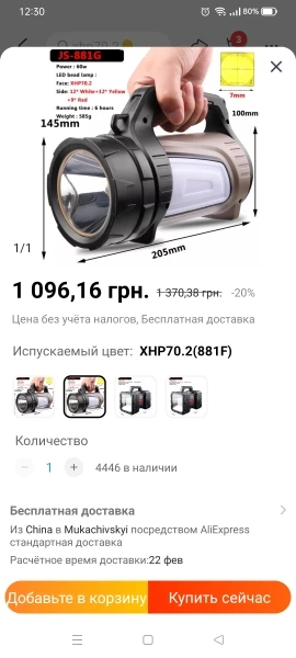 Аккумулятор: 2*32650 батареи (в комплекте)