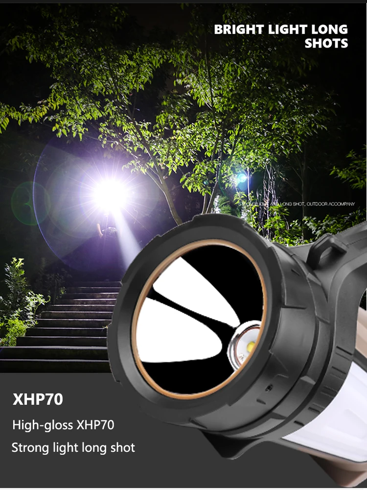 -Он обеспечивает дальность освещения до 300-500 метров и два разных режима освещения, идеально подходит для освещения всей комнаты или лагеря.