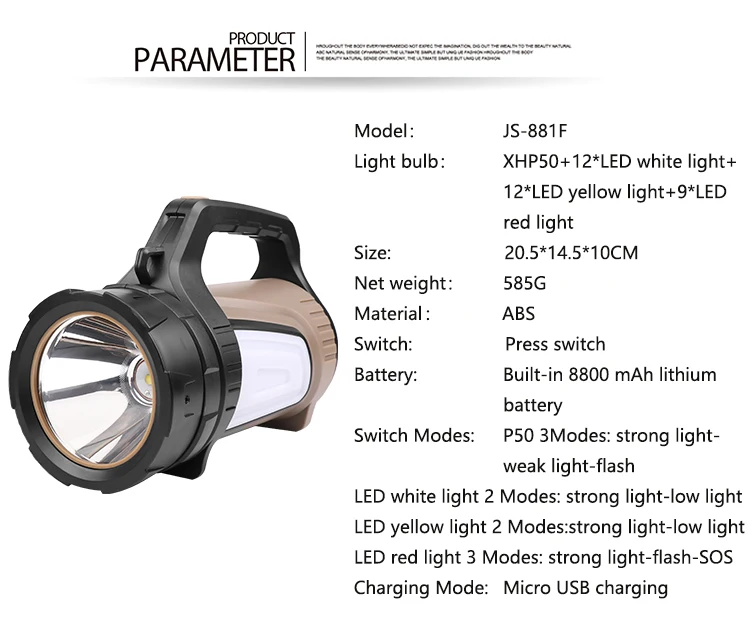 -Встроенная аккумуляторная батарея большой емкости для долгих часов освещения. Водонепроницаемый, предотвращает брызги под разными углами, подходит для наружной среды и плохих погодных условий.