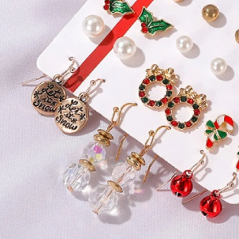 Набор женских сережек, 12 пар, в рождественском стиле, с Санта-Клау...