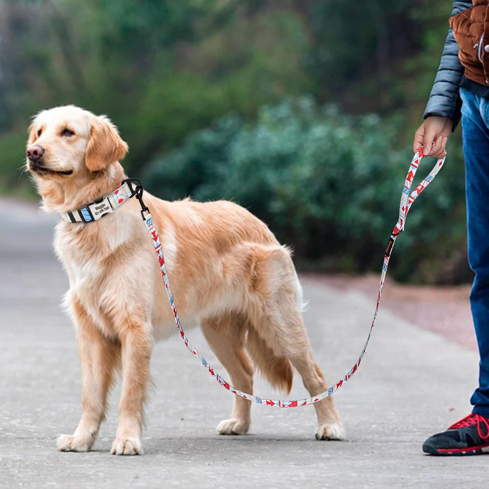 Тип:Нейлоновый ошейник для собак на заказ, модный поводок для собак с принтом, персонализированные ошейники с ярлыком для домашних животных, Бесплатная гравировка для маленьких средних собак