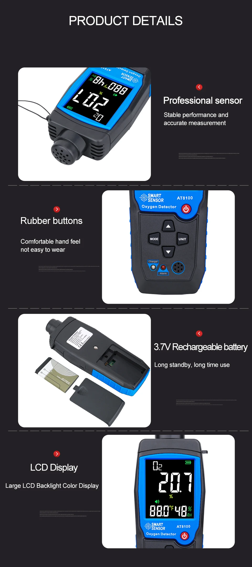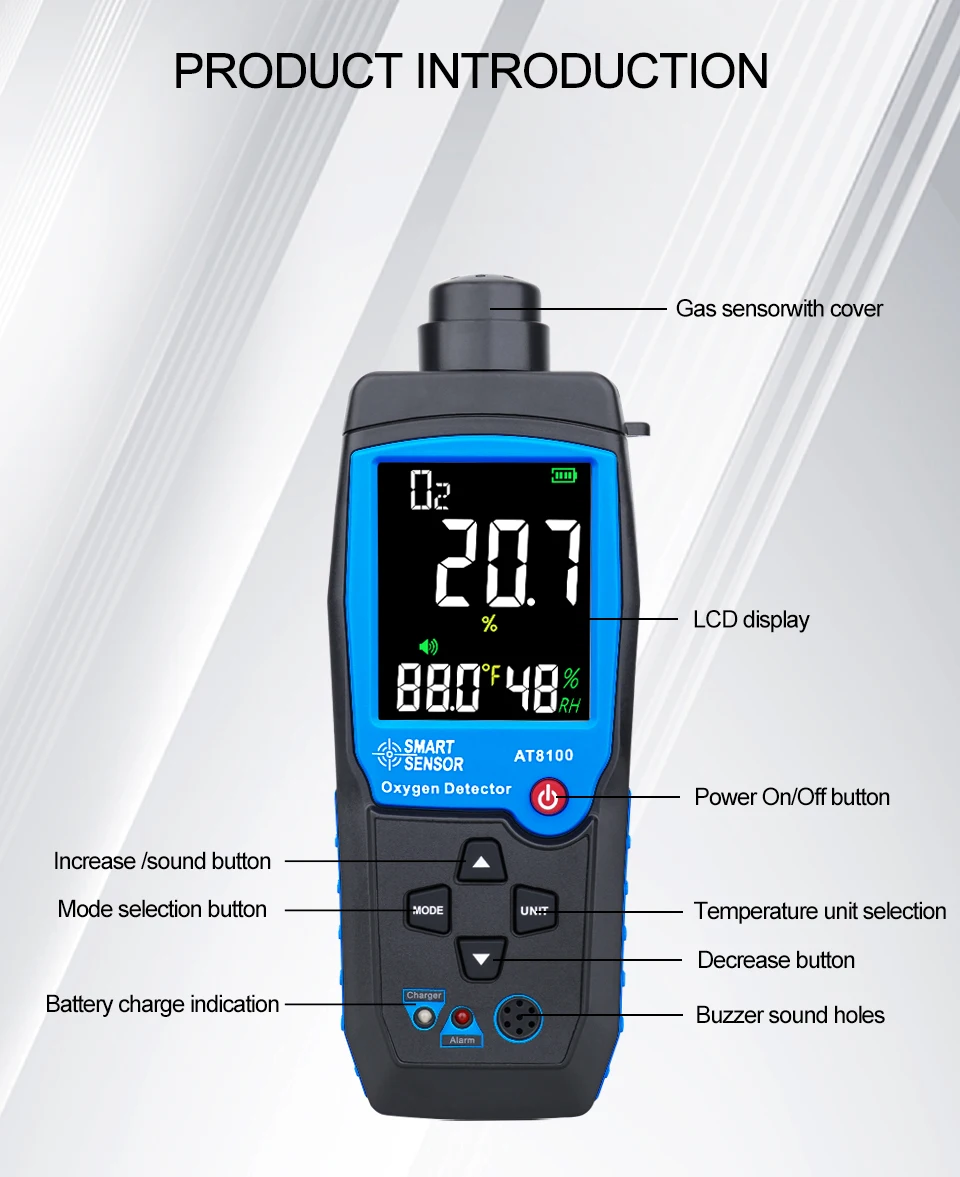 1 шт. AR8100 кислородный газовый монитор1 шт. Руководство пользователя1 шт. чехол для переноски1 шт. 3,7 V перезаряжаемая литиевая батарея1 шт. зарядное устройство