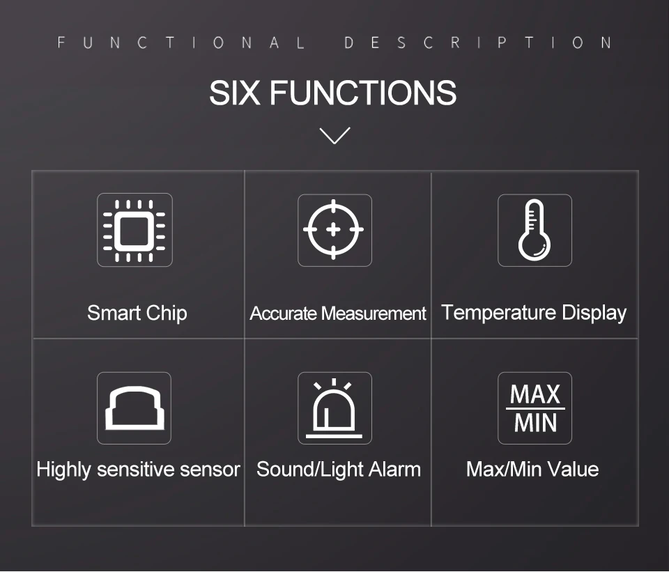 Акустическая, оптическая двойная сигнализация, может установить значение тревоги, сигнал тревогиЗвук разделен на 80 дБ