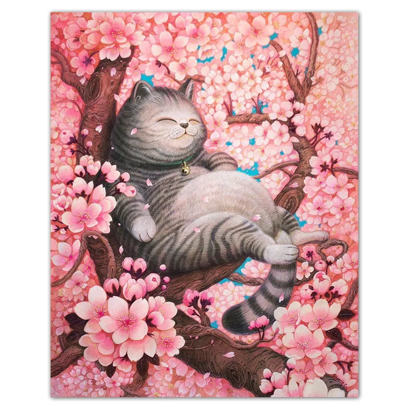 Алмазная картина 5D "сделай сам", вышивка крестиком, кошка Тоторо, алмазная вышивка, животное, круглая Алмазная мозаика, кошка, цветение персика