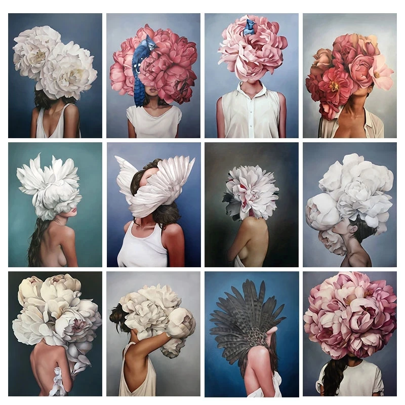 Современная фигурка леди голова цветок картина домашний декор Сканд...