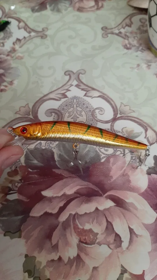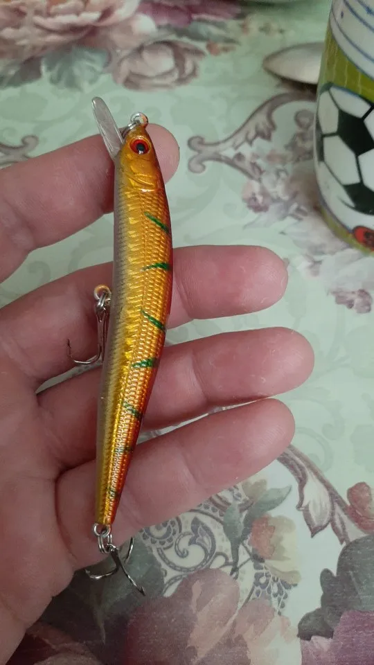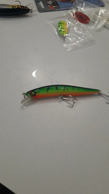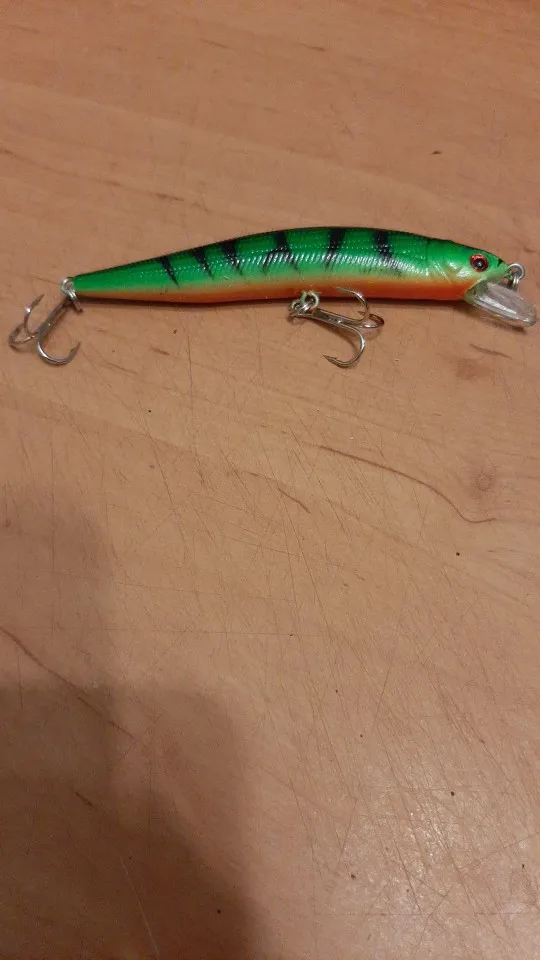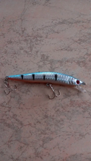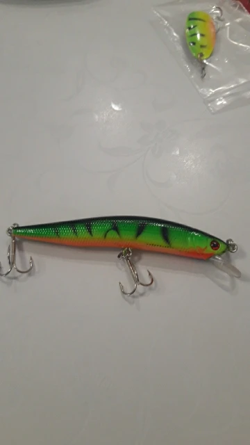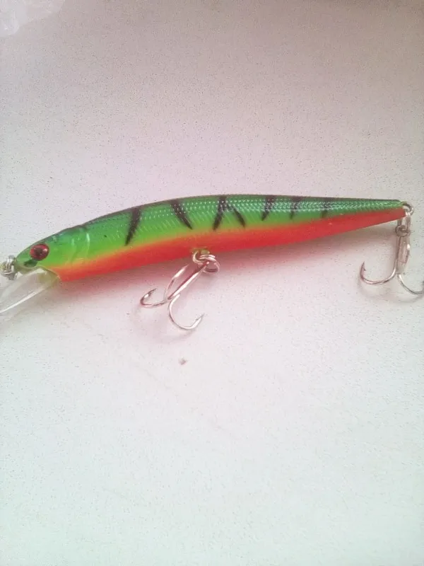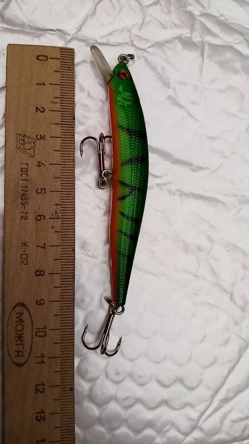 Воблерок суперский, окраска на отлично, колечки упругие, крючки острейшие, для 6го номера крепкие, петли пролиты, клеить не нужно, тело воба длинной 91мм,лопасть 15мм,плавающий,до SP можно догрузить, классический щучий воблерок с 2мя крючками. Магаз норм. Доставка быстрая вместе с другими из разных магазов.