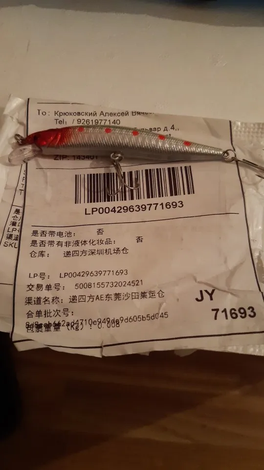 отправили посылку быстро. доставка тоже быстрая. визуально приманка нормального качества. трек номер отслеживался нормально.