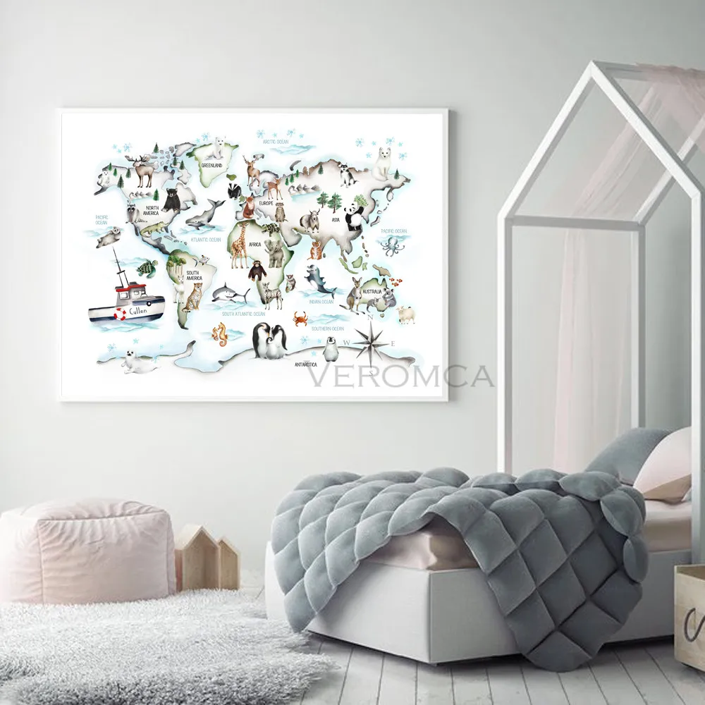Карта мира, плакаты, принты, пастельный декор для детской комнаты, ...
