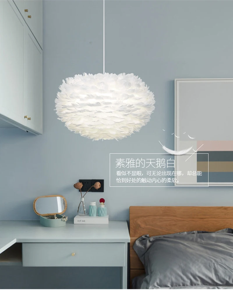Современная Подвесная лампа, перьевой светильник, Скандинавская Подвесная лампа E27, Подвесная лампа с гусиным пером для спальни, гостиной, прикроватный подвесной светильник