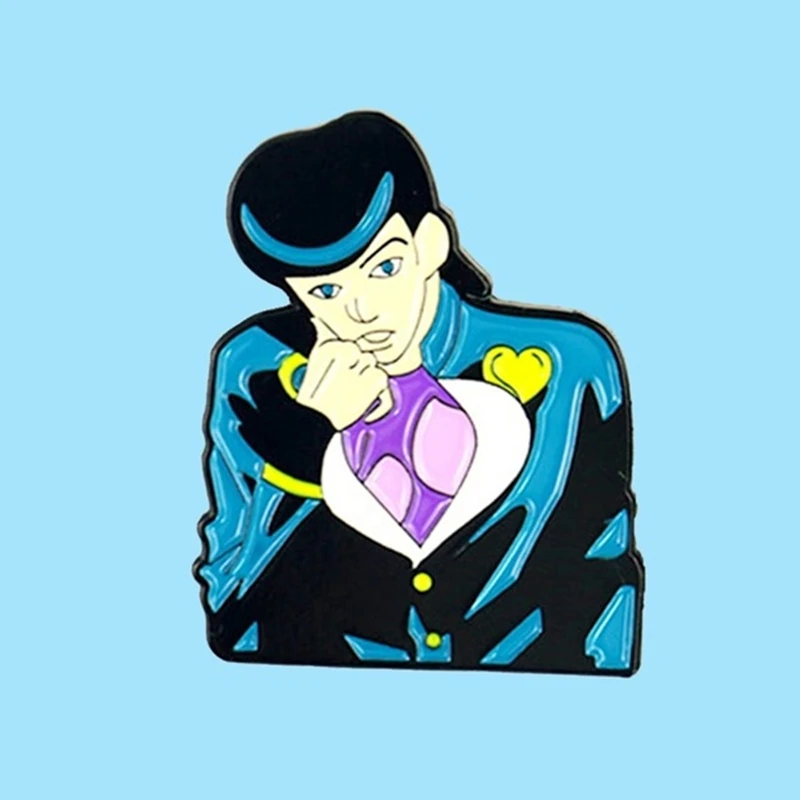 Золотая эмалевая брошь Josuke, эмалевая брошь Невероятные приключения Джоджо, значок на лацкане, Металлическая Булавка из сплава, модные ювелирные аксессуары, подарки
