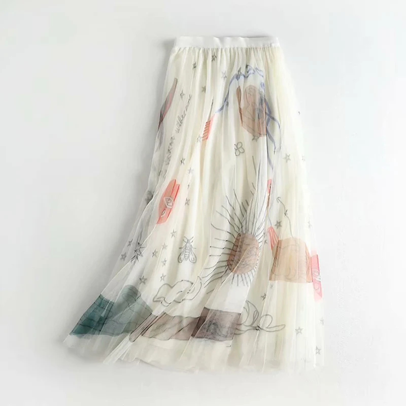 Юбка-макси из тюля TIGENA, розовая, черная, трапециевидная, с высокой талией, с красивым принтом, в Корейском стиле, 90 см