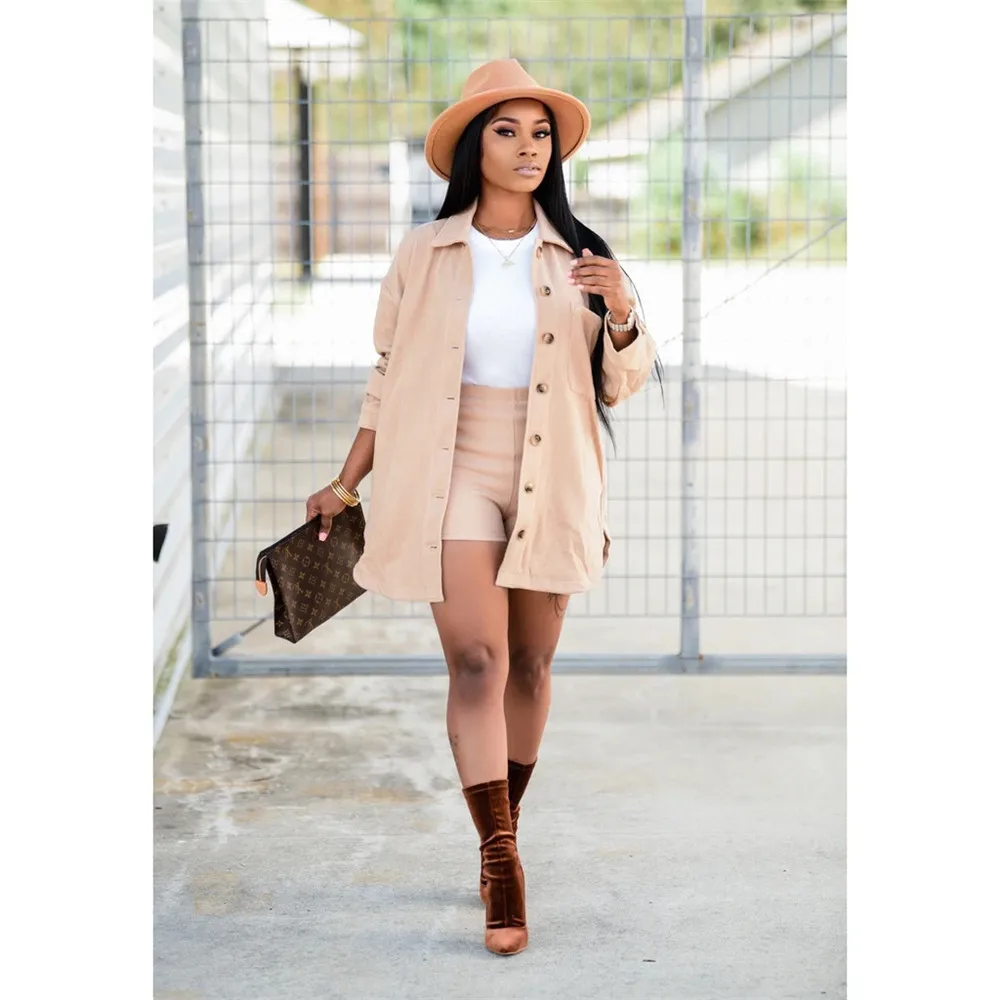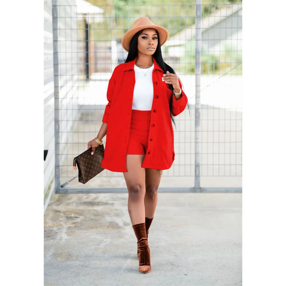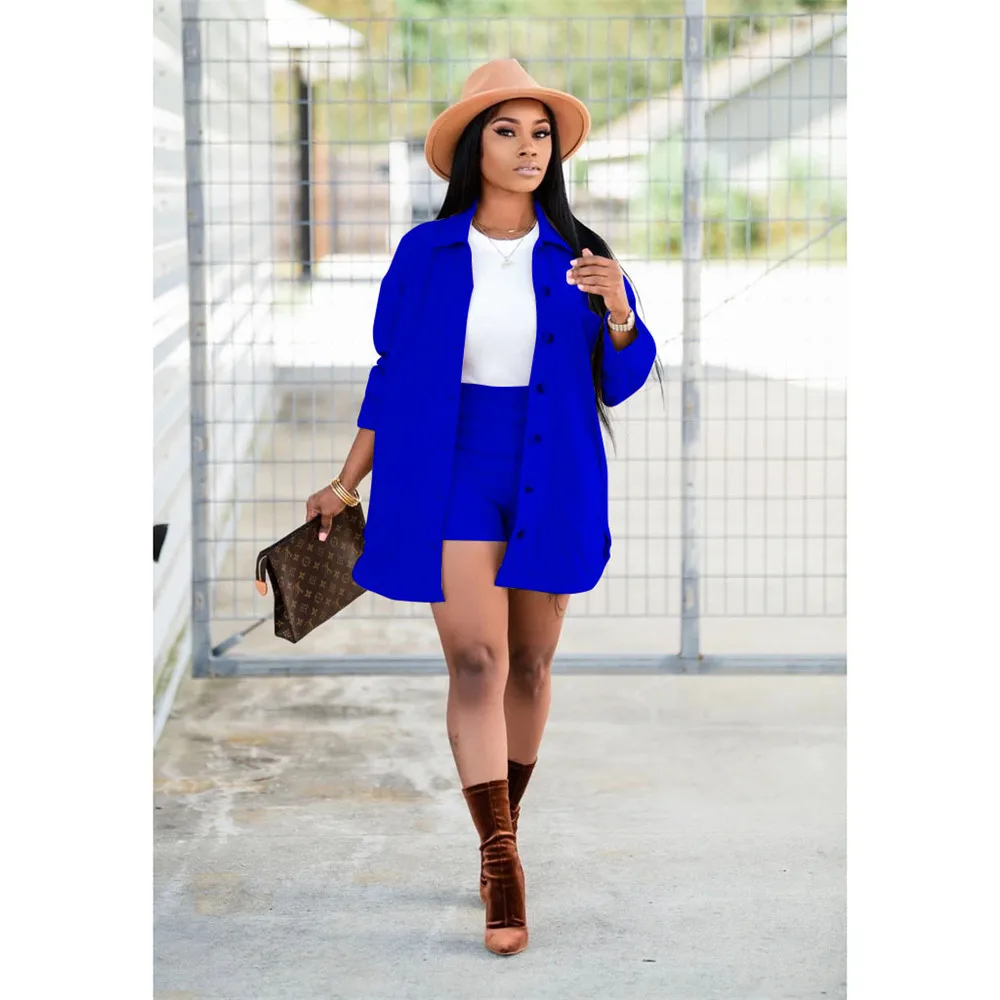 Женский комплект одежды из 2 предметов, повседневный однобортный пиджак и шорты в уличном стиле, комплект из двух предметов