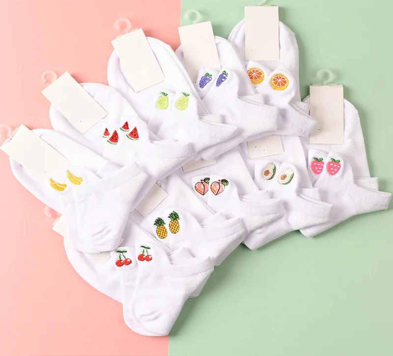 Женские короткие носки 2020 носки с мультяшным фруктовым принтом авокадо кавайные носки для женщин Harajuku вышивка уличные носки