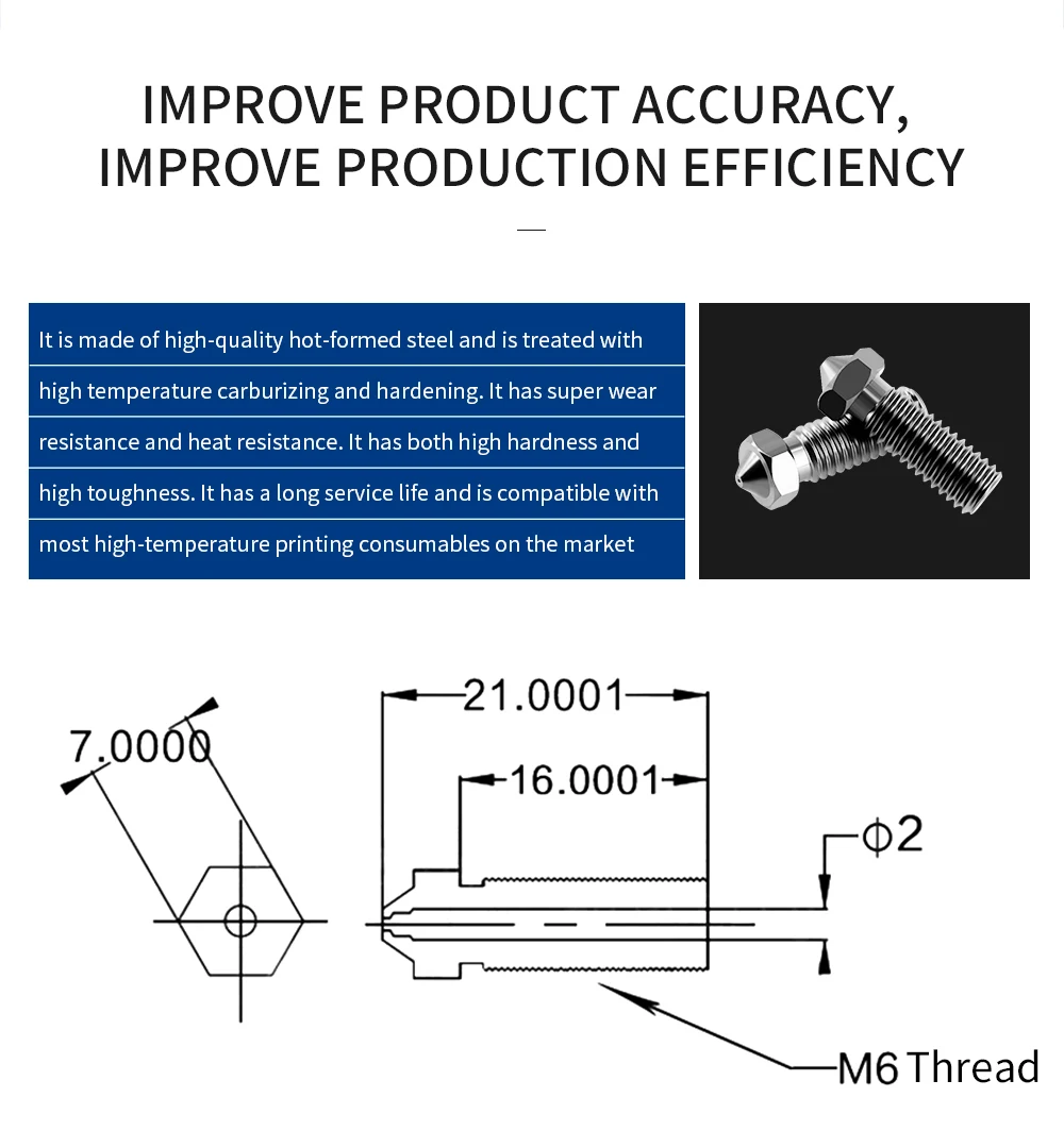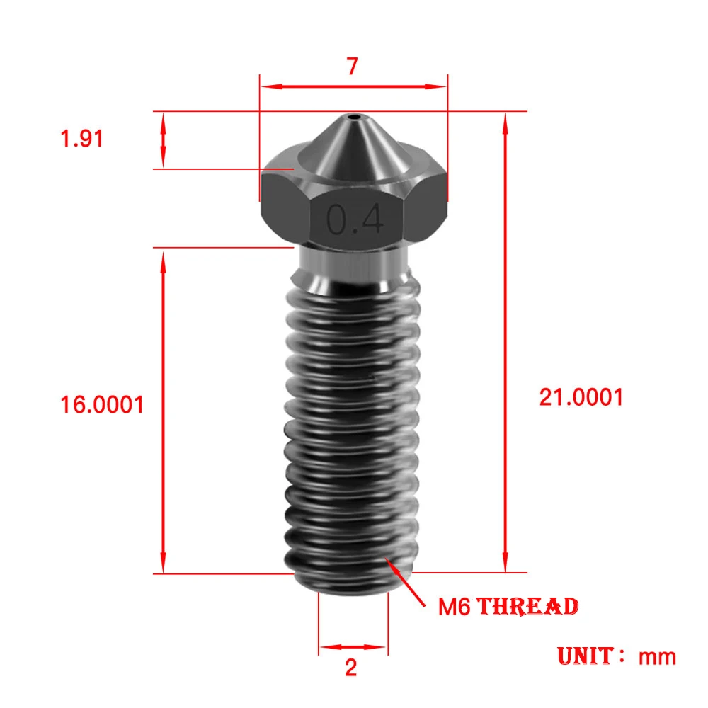 Форсунка Volcano из закаленной стали 1,75 мм M6 для высокотемпературной 3d-печати или наполнителя из углеродного волокна для E3D Volcano Sidewinder X1