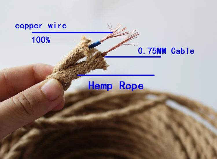 Винтажный плетеный желтый электрический провод, 2*0,75 мм, пеньковая веревка, плетеный кабель, ретро подвесной светильник, шнур